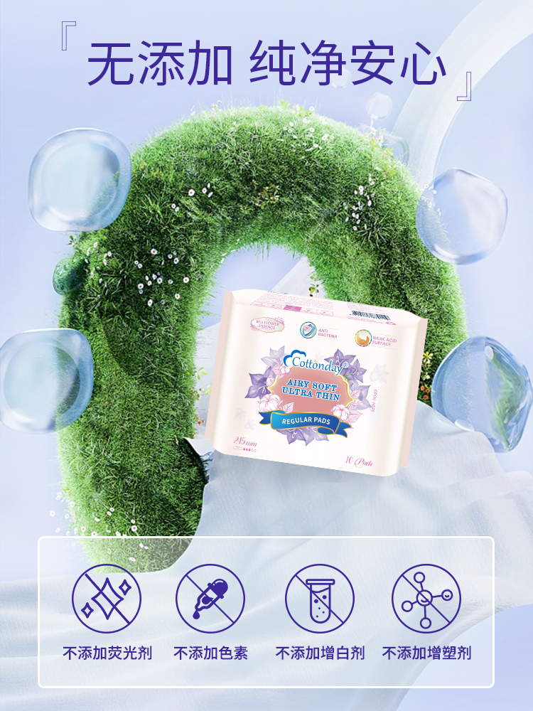 【COTTONDAY】绵柔时光 风铃草弱酸日用卫生巾245mm10片*2包(共20片)