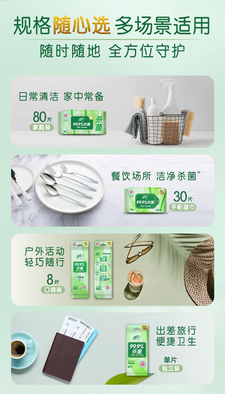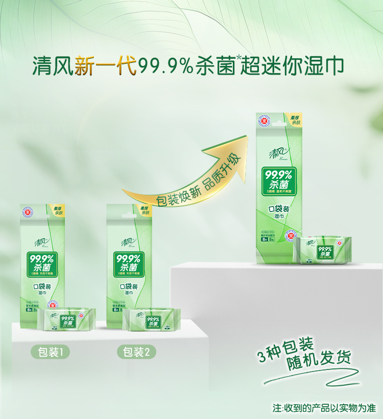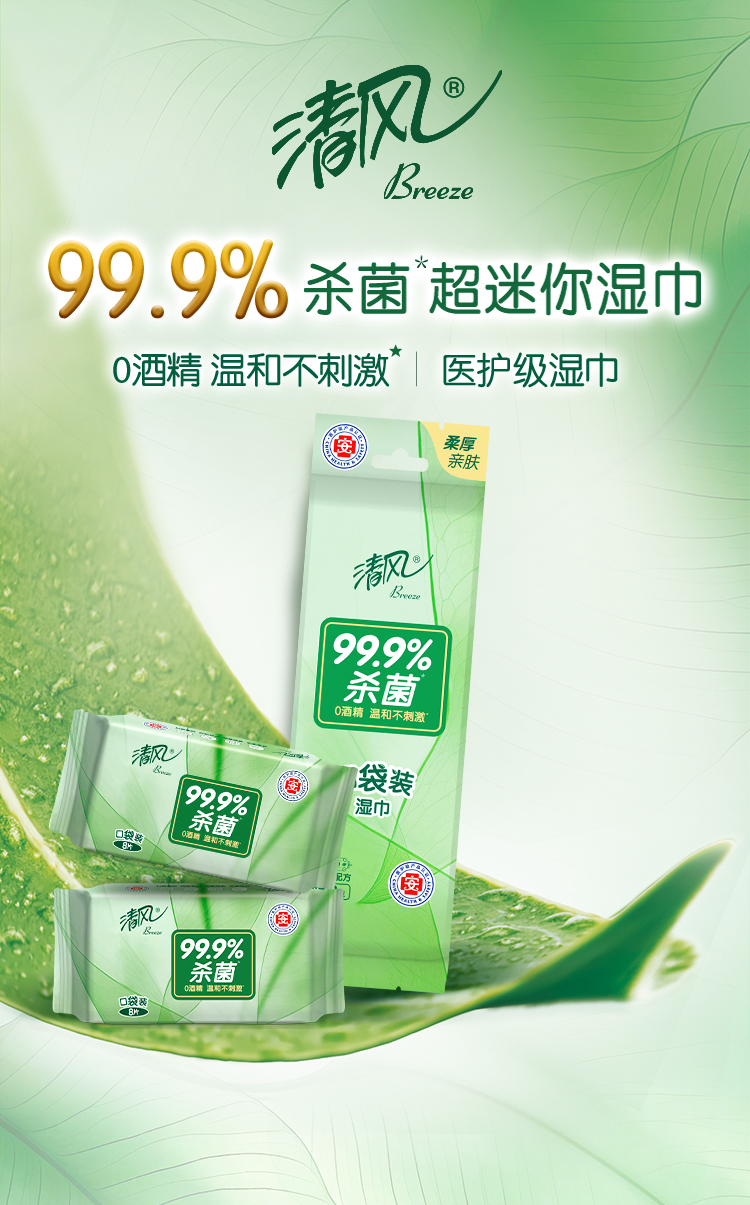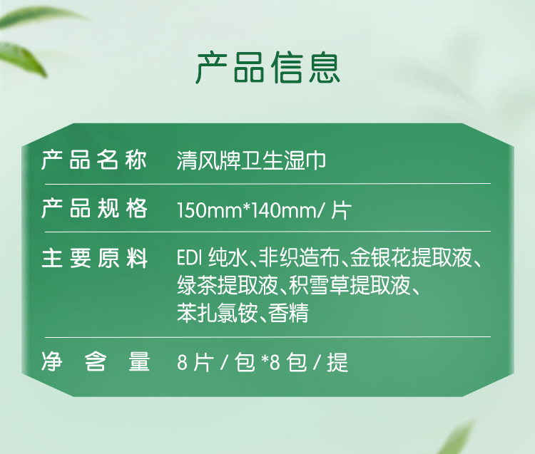 【官方自营】清风超迷你御本草湿巾8片*8包*3提