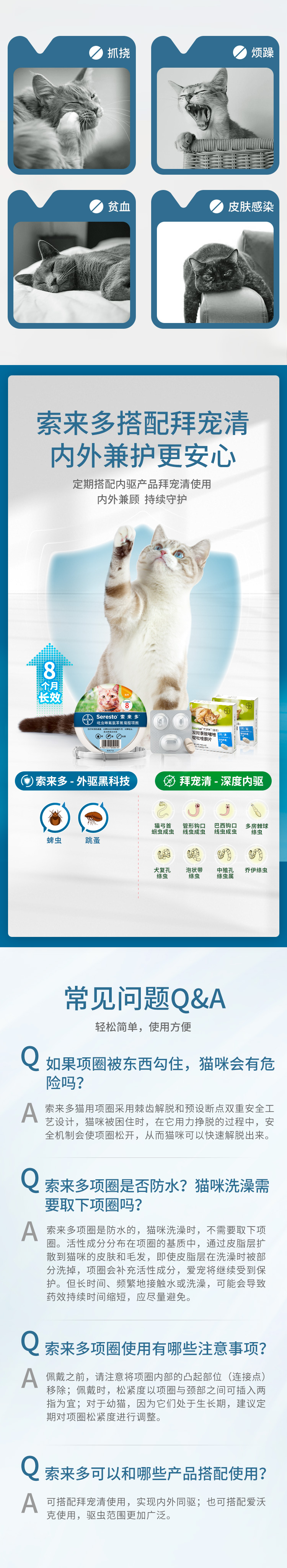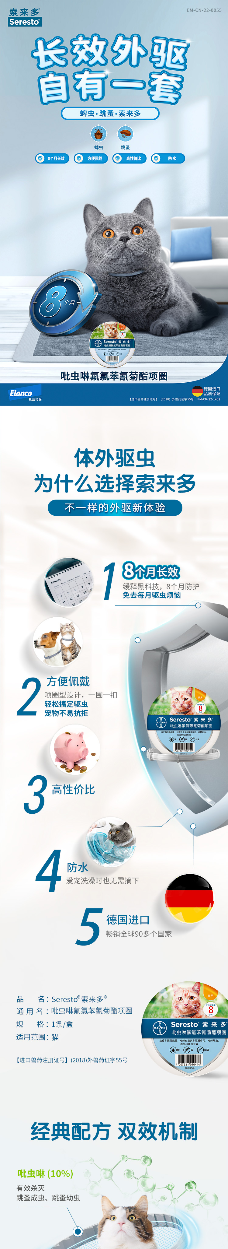 德国索来多猫咪驱虫项圈体外驱虫宠物猫防水项圈驱除蜱虫跳蚤幼蚤