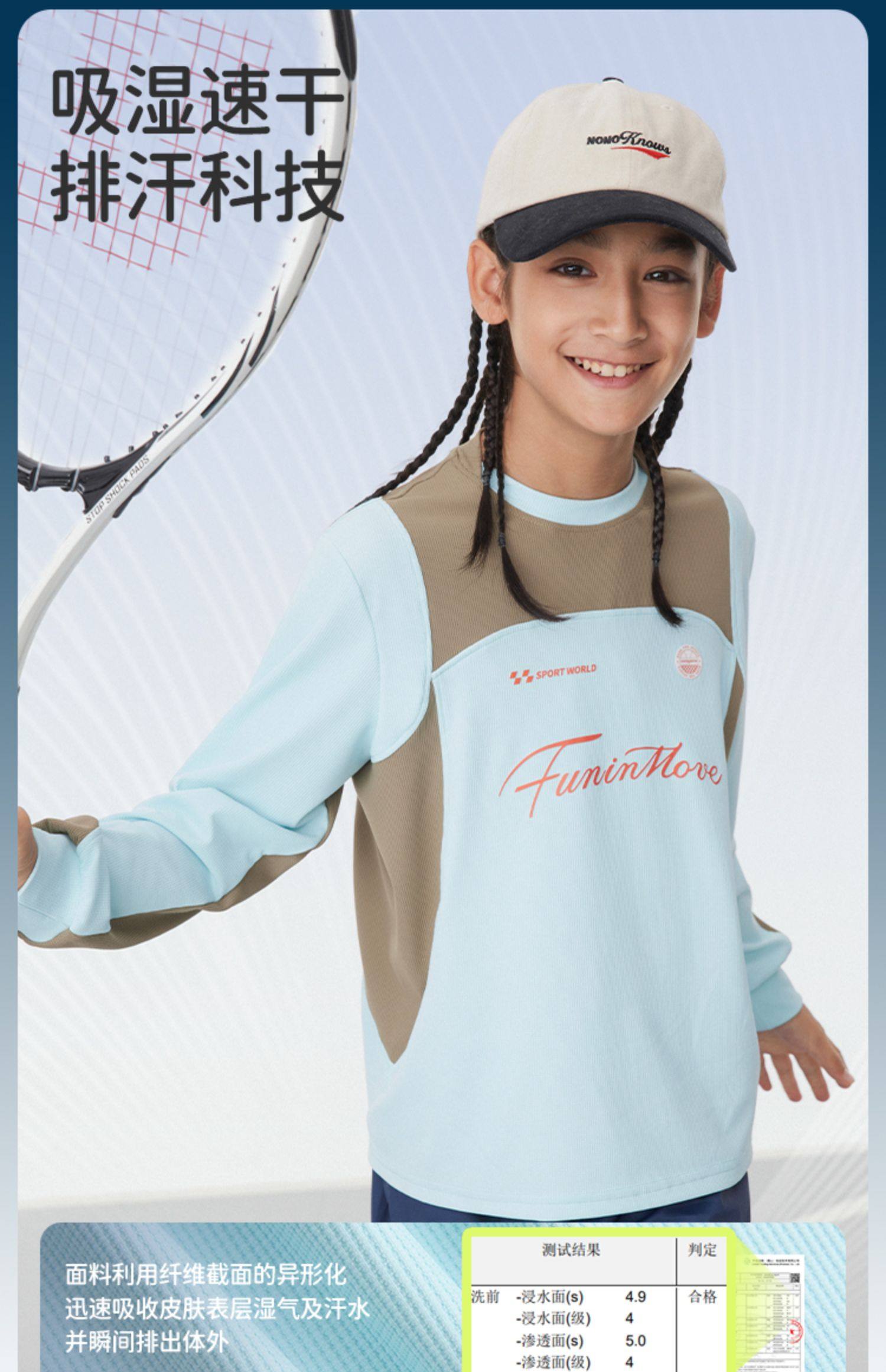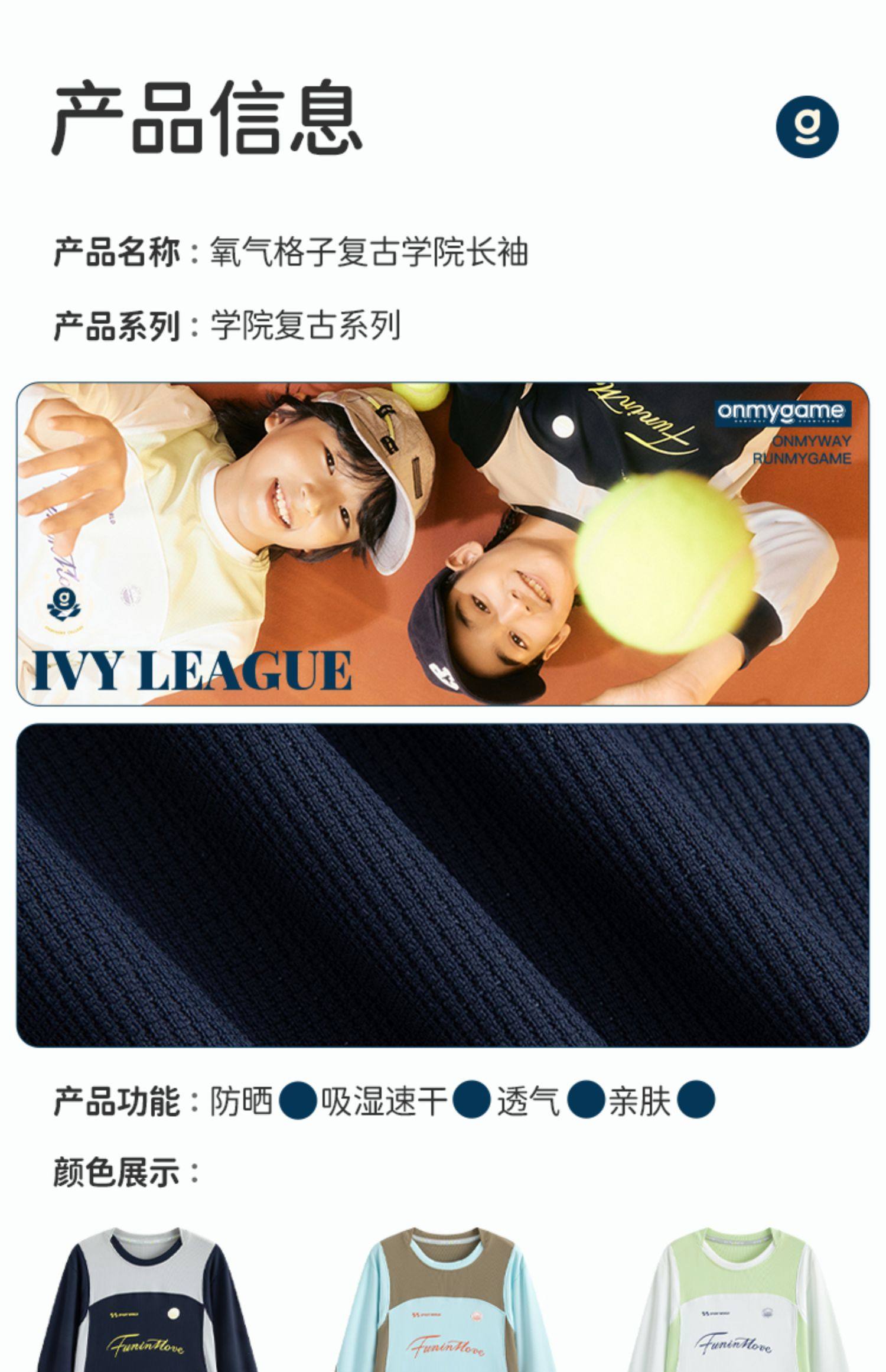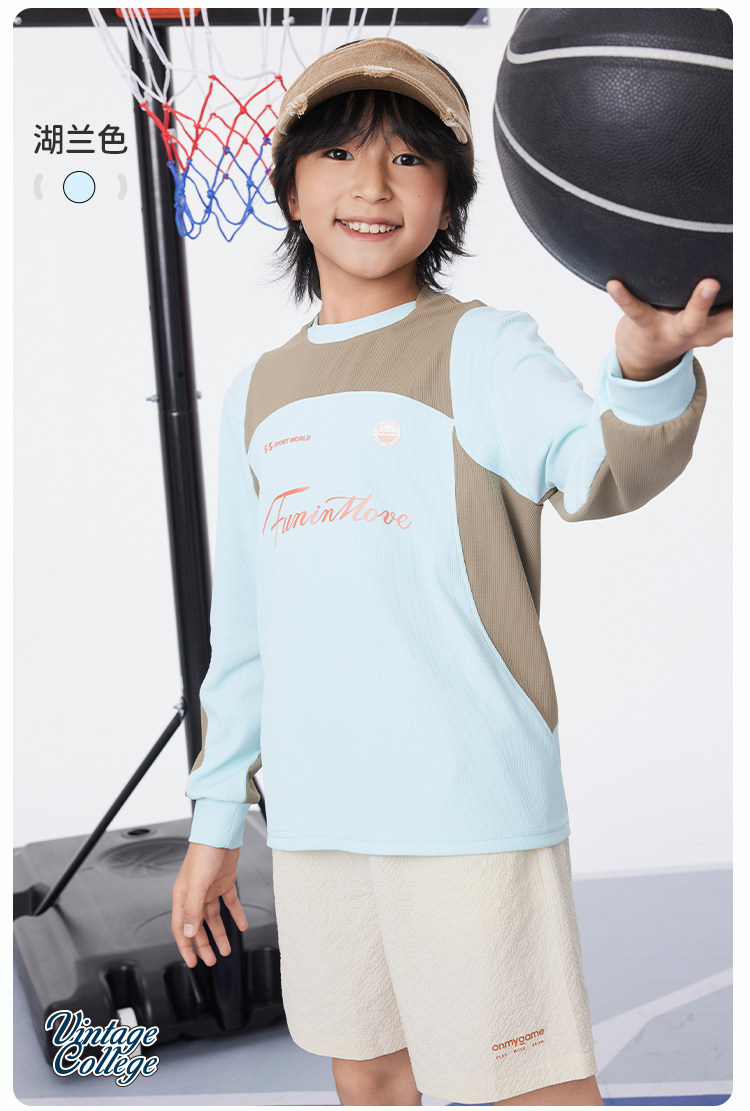 onmygame【氧气格子】男童复古学院长袖T恤2025年春季新款速干衣KE20A210590