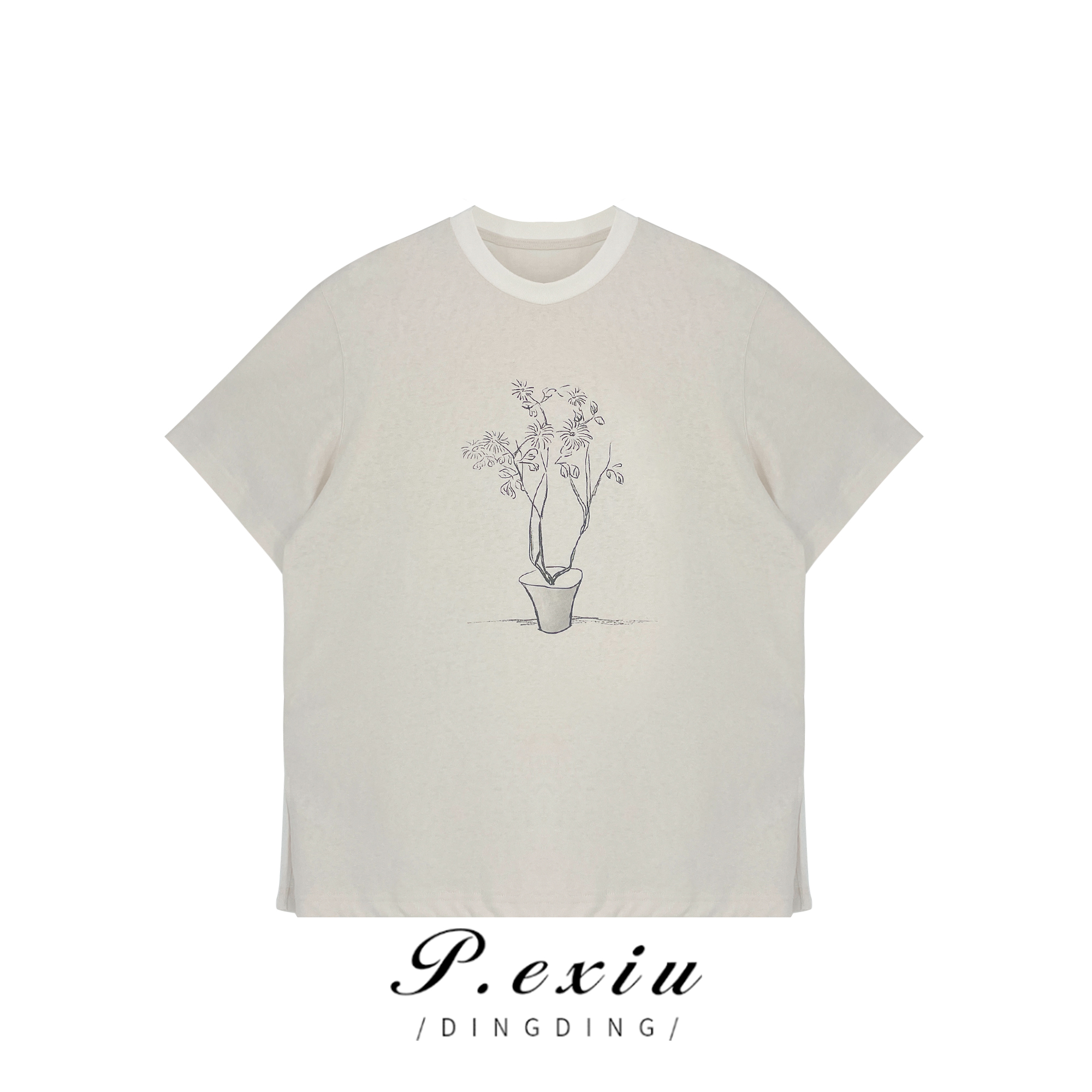 03-4潘依绣丁丁宠粉PanYiXiu/潘依绣国风简约通勤印花圆领短袖T恤 20908TT