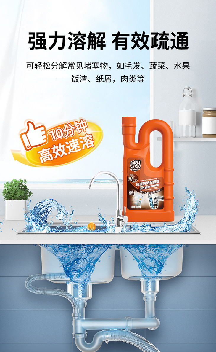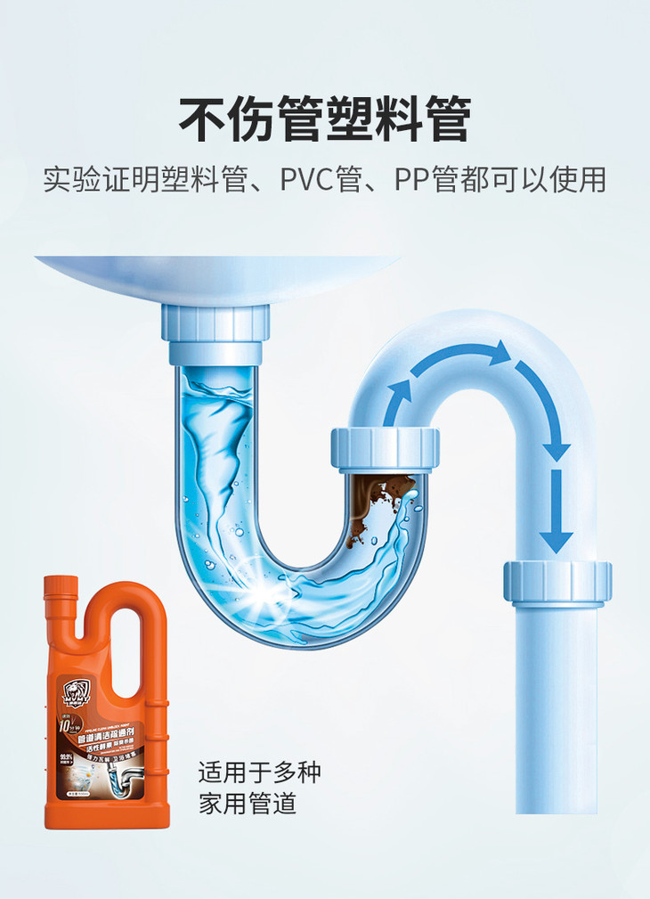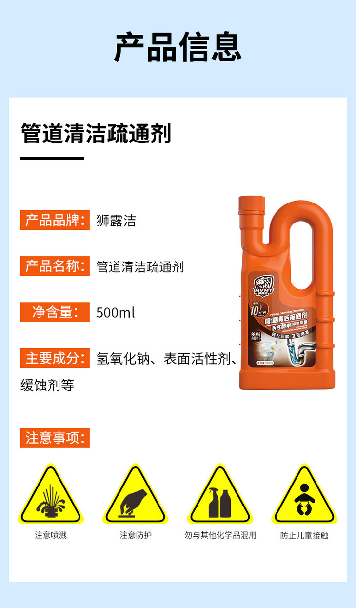 狮露洁管道清洁疏通剂 ✅强力瓦解 卫浴堵塞 ✔毛发、蔬菜、水果、饭渣、肉类 轻松分解 ✔通管不伤管 清洁+养护,一步到位!