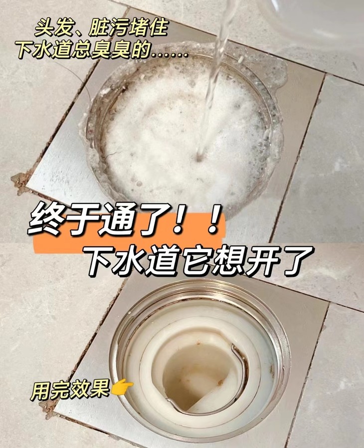 咱就是说,下水道管堵塞,堵到洗澡的时候,脚泡在水里还有谁体验过😭 尤其是洗头的时候,水积的更深! 请师傅上门通下水道,一次200💰 买那种长长的管子伸进下水道我又受不了那味、那场面🙅 经过我的寻寻觅觅,终于找到了一个清洁宝藏管道疏通剂!! 【狮露洁管道清洁疏通剂】 傻瓜操作真的贼简单!!直接倒入疏通剂,再倒入热水,等个30分钟,再大量冲水就通了!!! 真的贼快贼方便,我不允许还有人不知道它!!!!