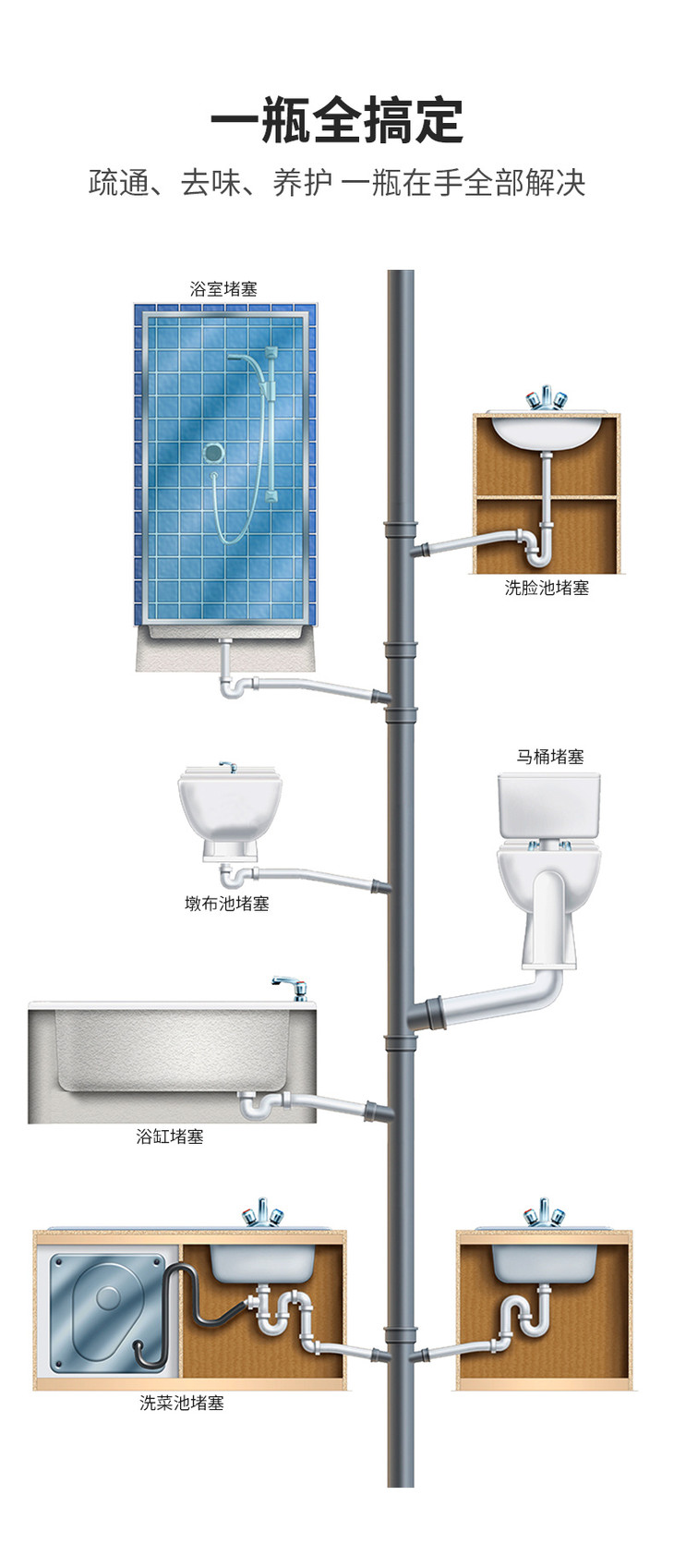 真的很好用❗立竿见影 居家黑科技 哪里堵塞通哪里快速溶解污垢 堵塞恶臭✅一瓶解决! 水管畅通无阻