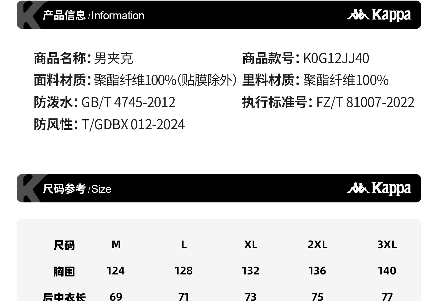 Kappa 男休闲夹克2025新款防风防泼水宽松立领运动外套K0G12JJ40