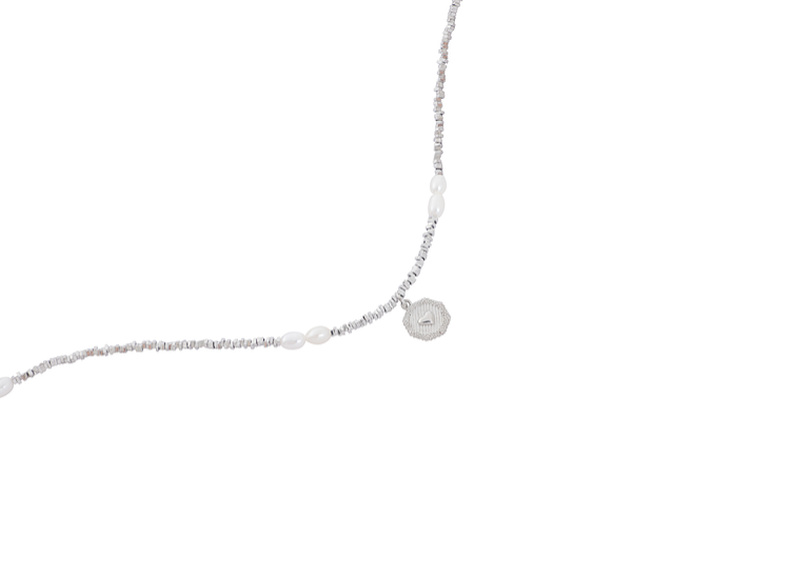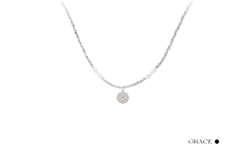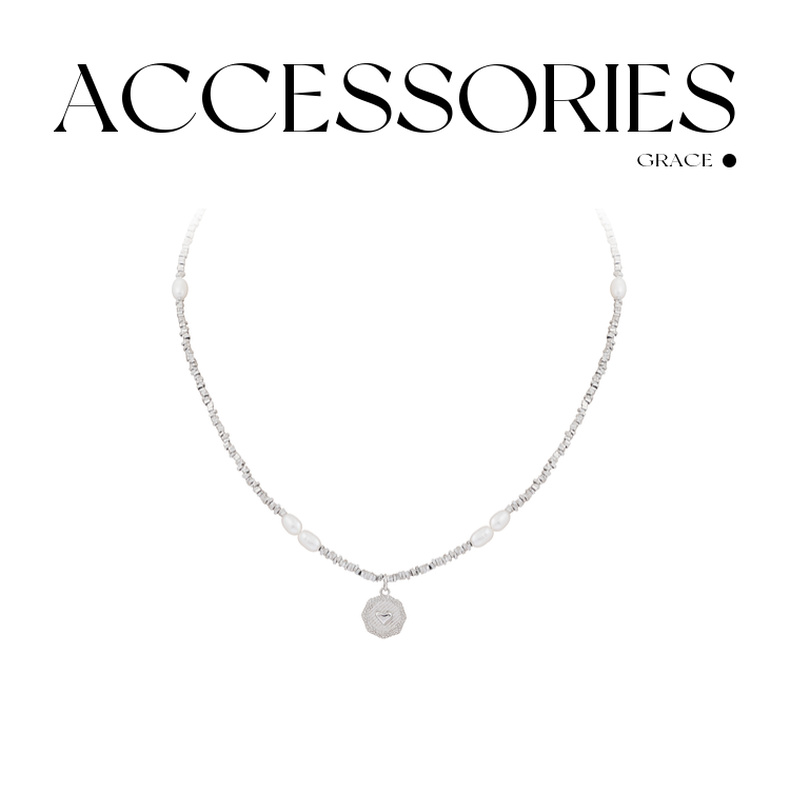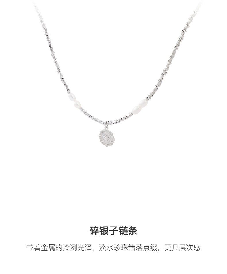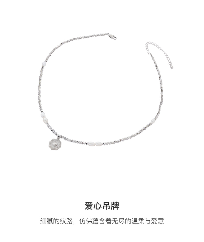 三彩2025新款复古淡水珍珠碎银子项链爱心吊牌毛衣链约会小众时尚