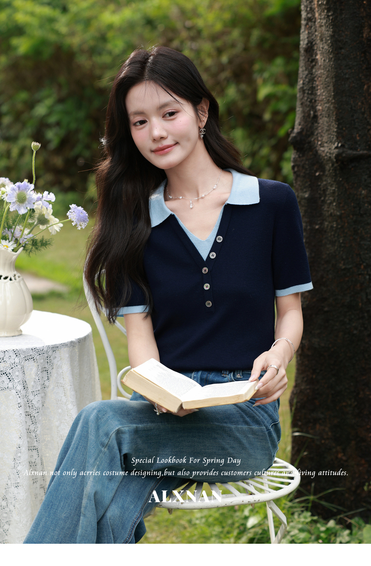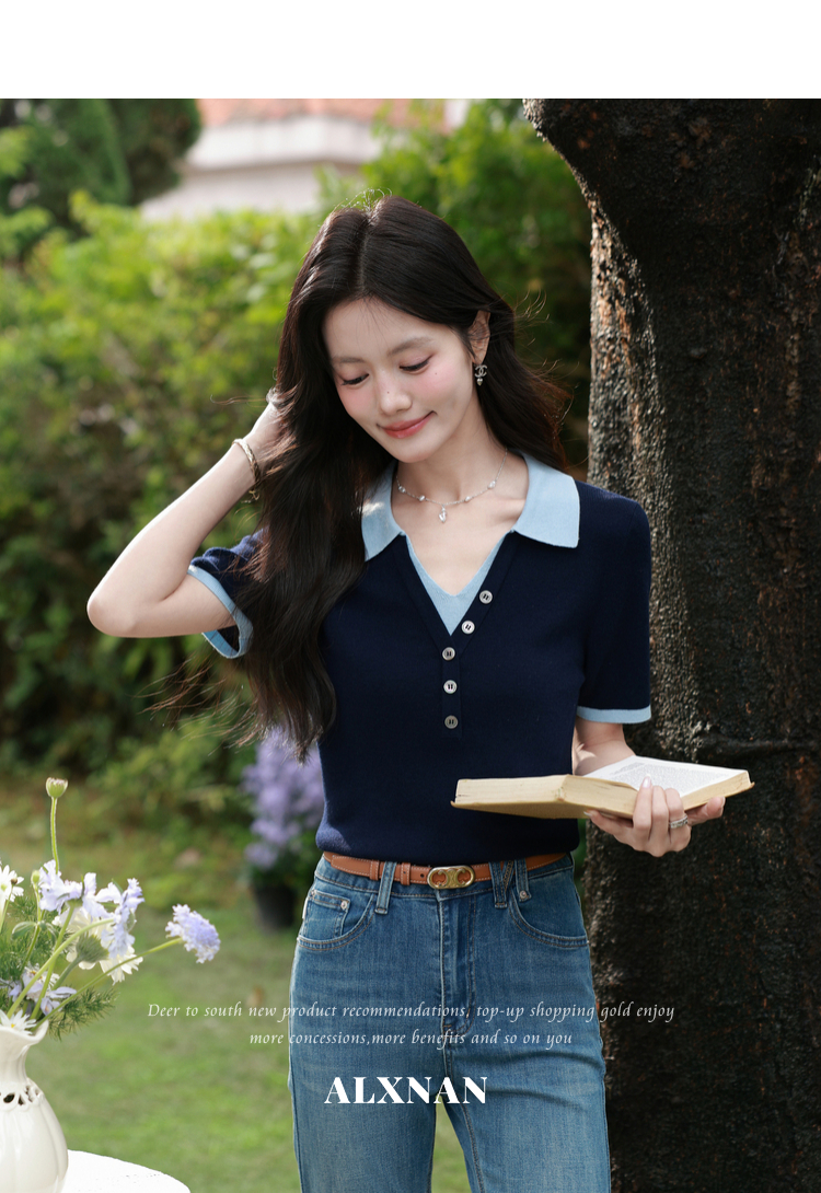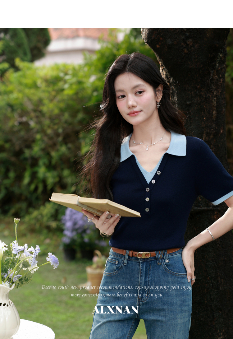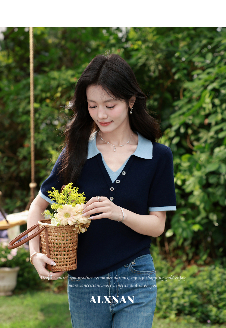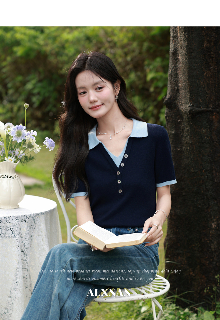 鹿向南【0330/20:00新品前一小时7折限量100件】藏蓝色T恤