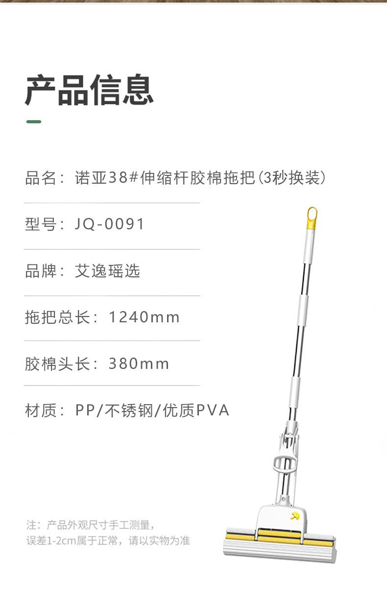 艾逸瑶选诺亚38#伸缩杆胶棉拖把(3秒换装)JQ-0091
