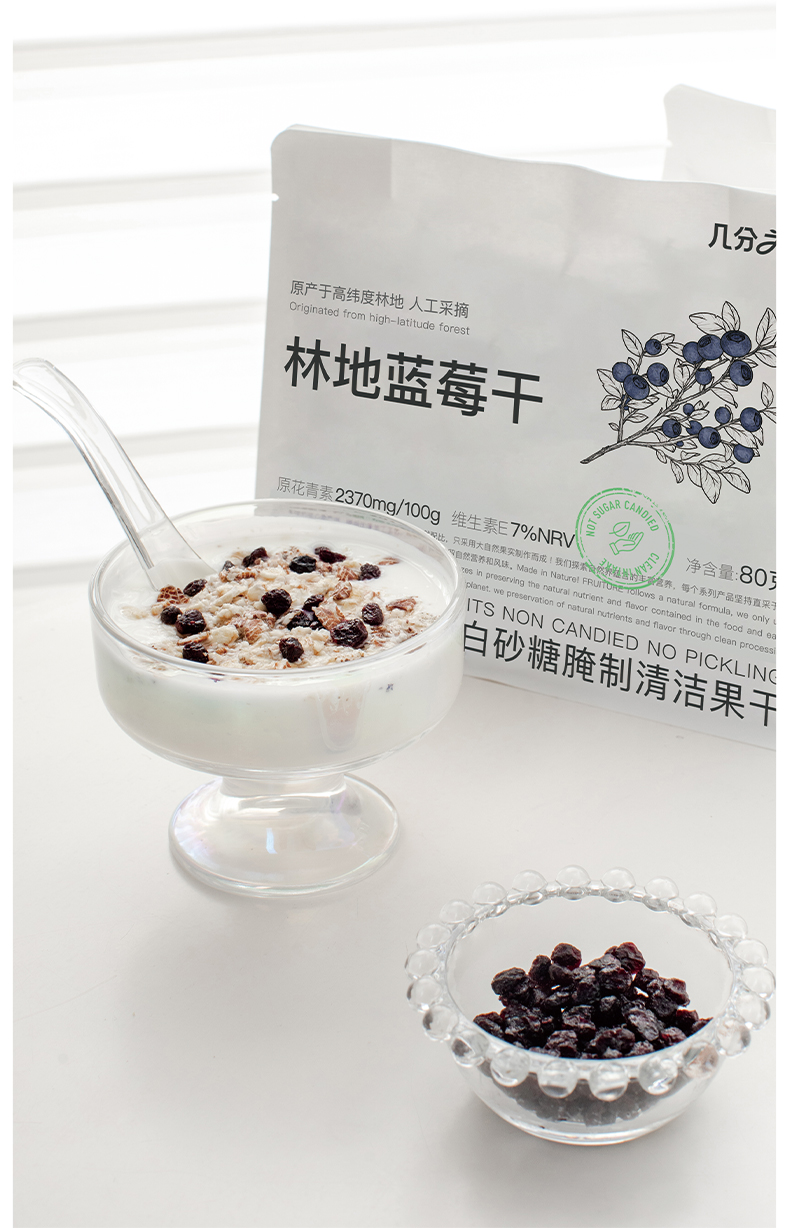 【冷浸脱水低温慢烘】几分之几 蓝莓干 80g/袋 人工采摘安心之选