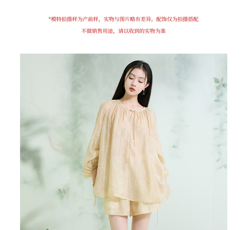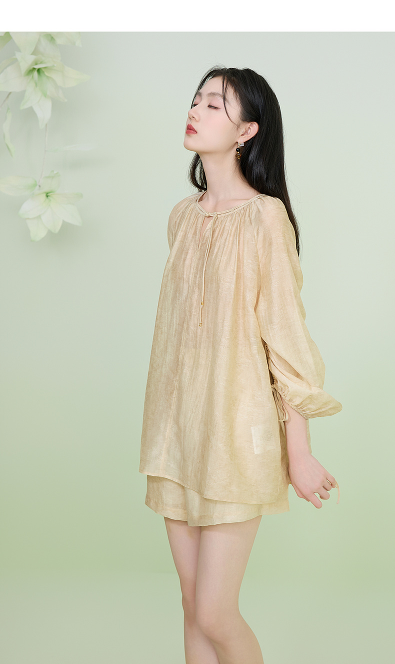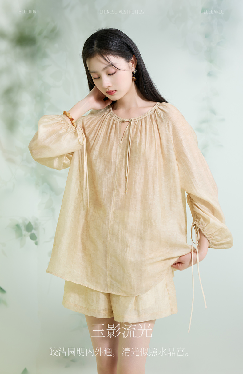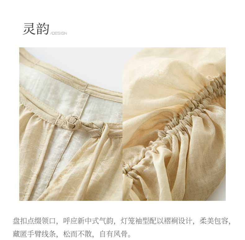 三彩【玉影流光】2025夏季新款新中式小衫莱赛尔盘扣灯笼袖上衣C