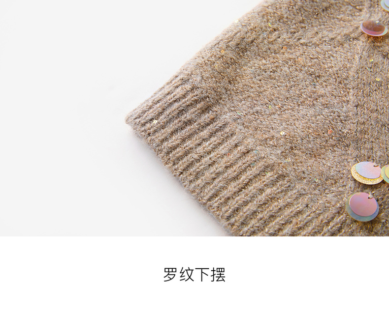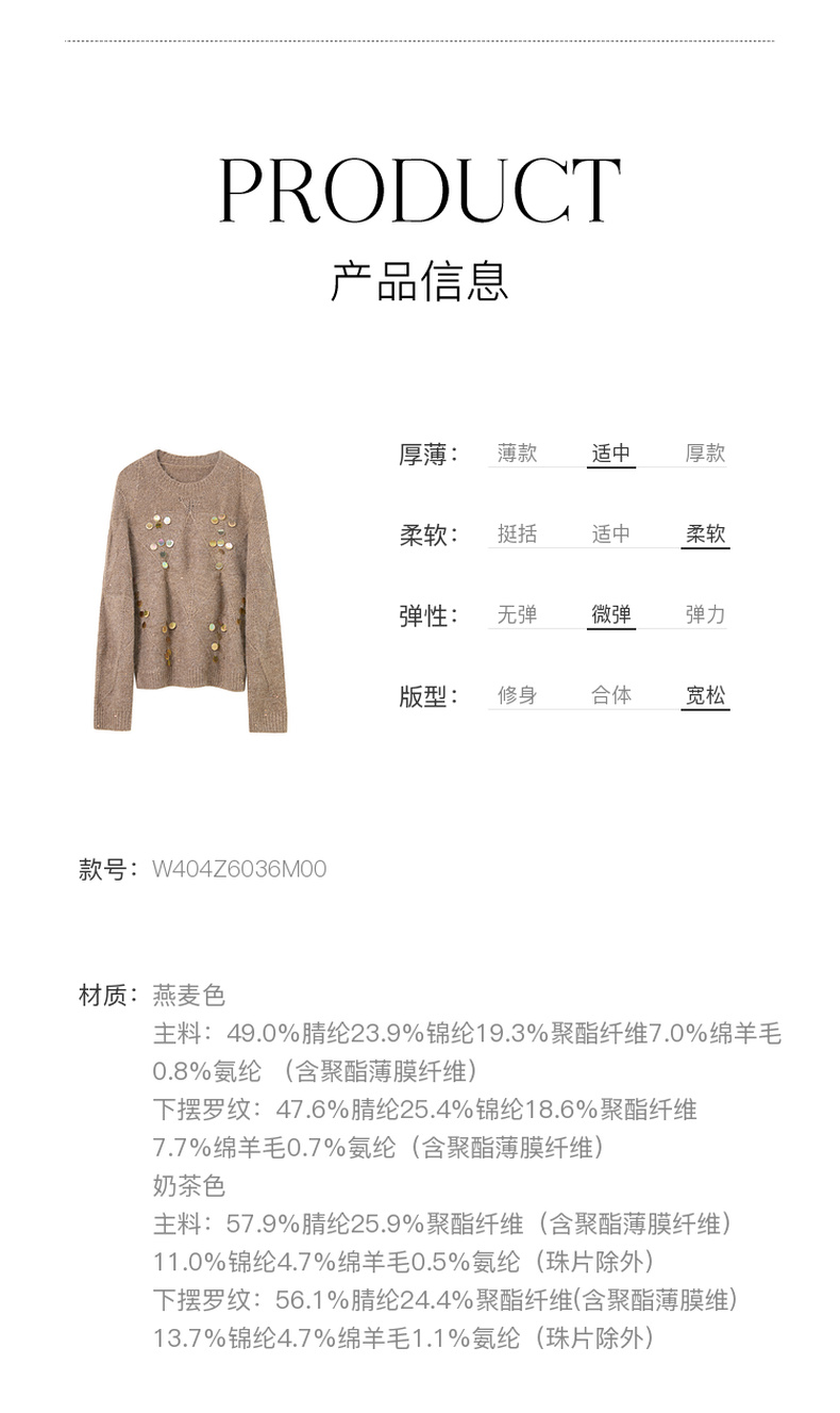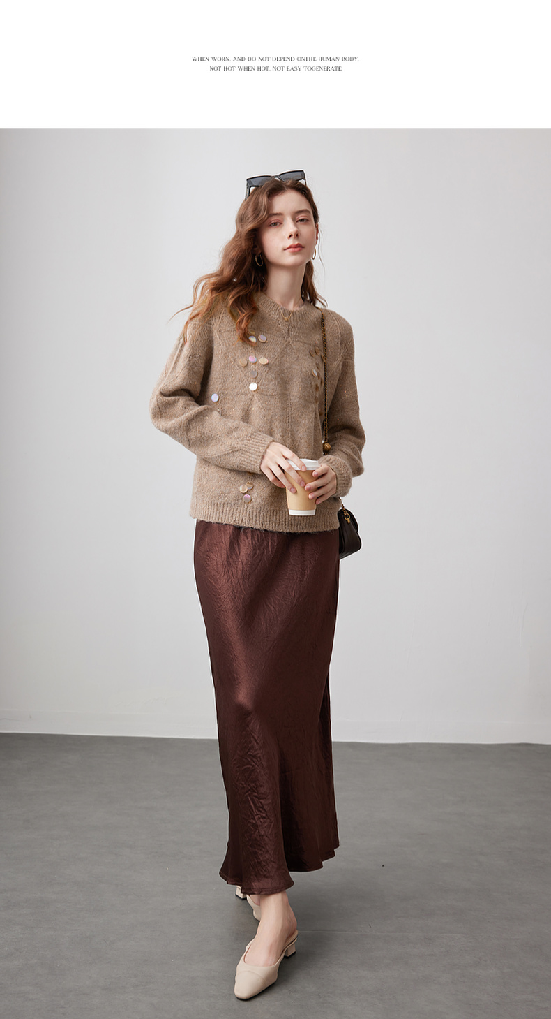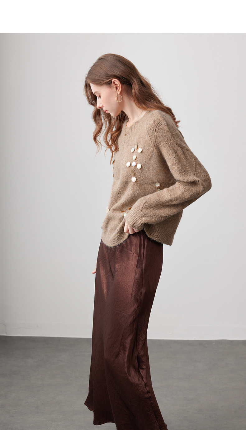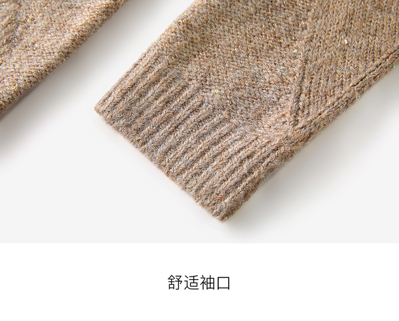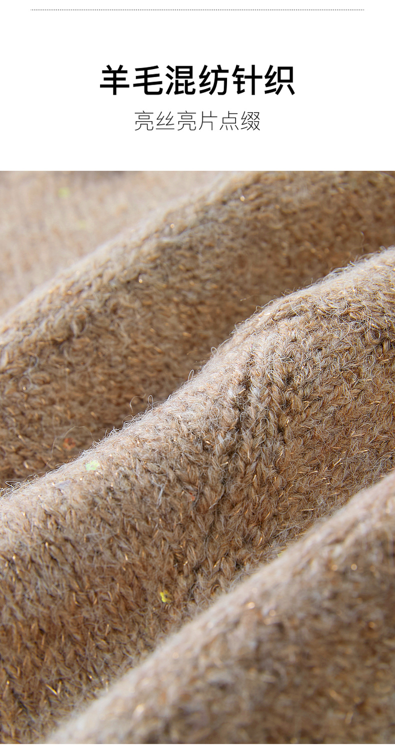 三彩2025冬季新款美拉德亮片针织衫宽松慵懒套头毛衣圆领女