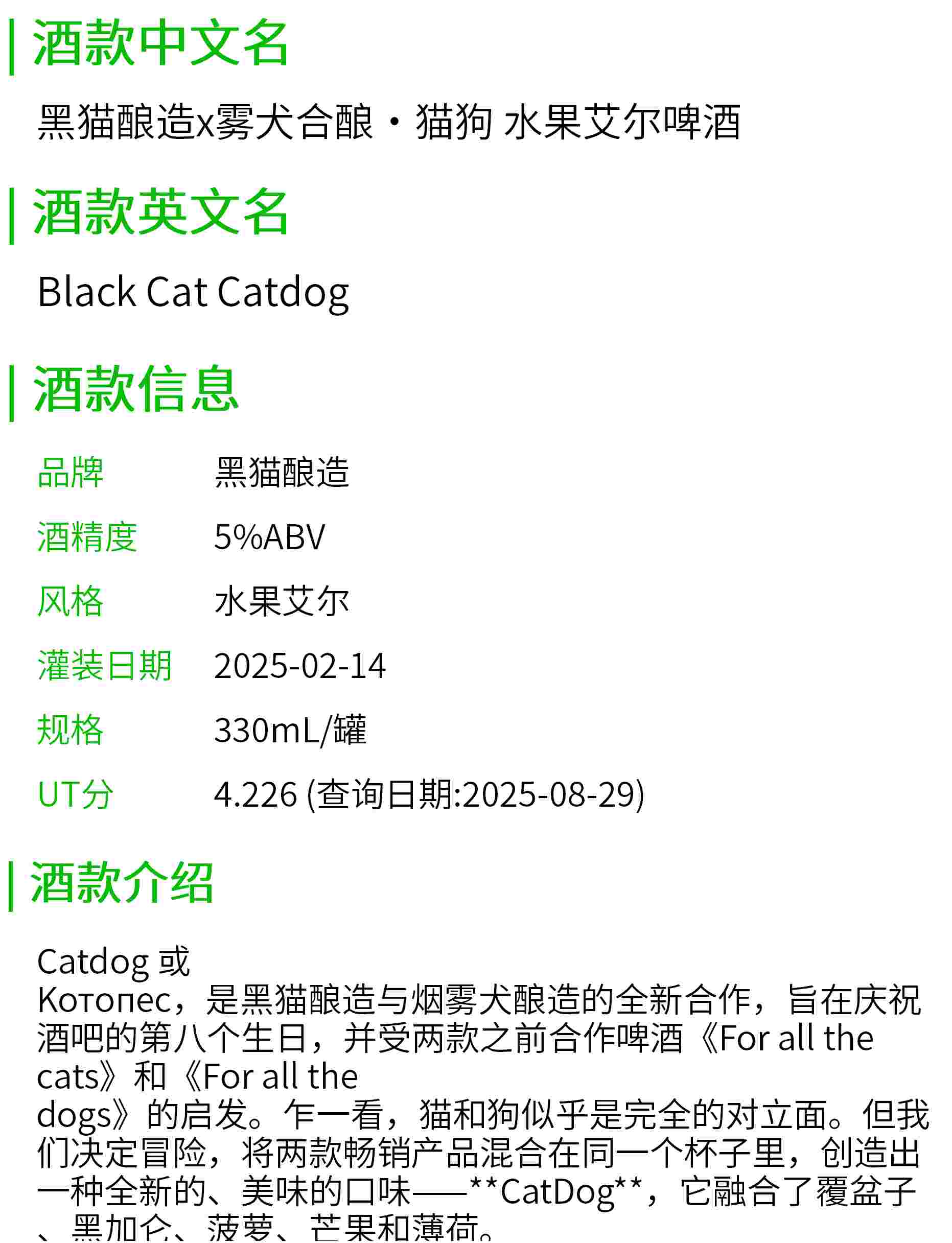 黑猫酿造x雾犬合酿·猫狗 水果艾尔啤酒