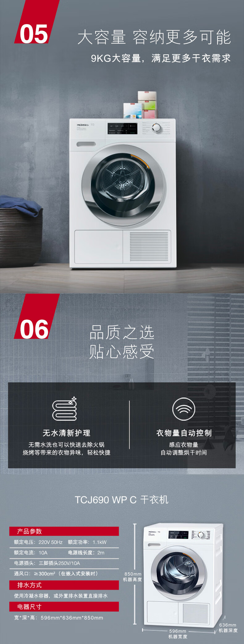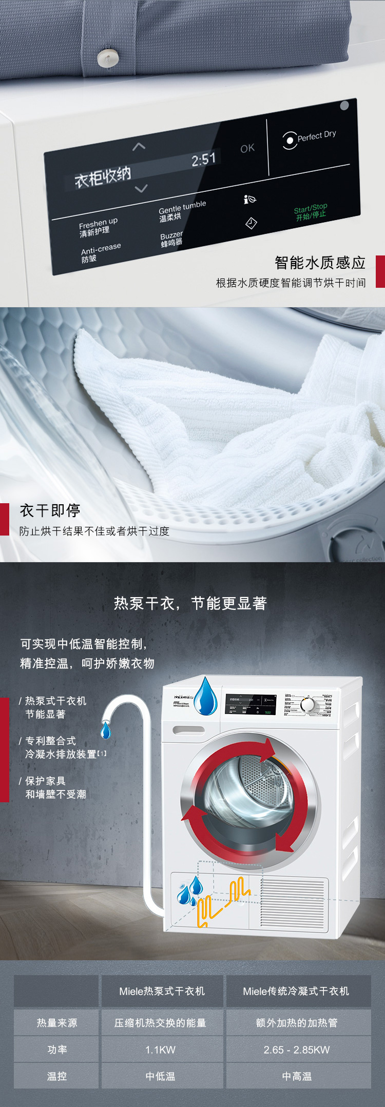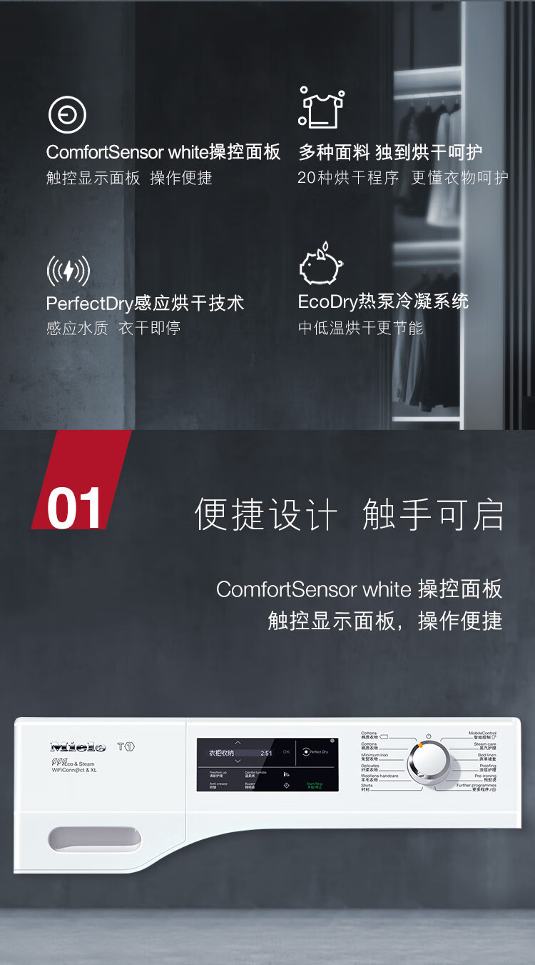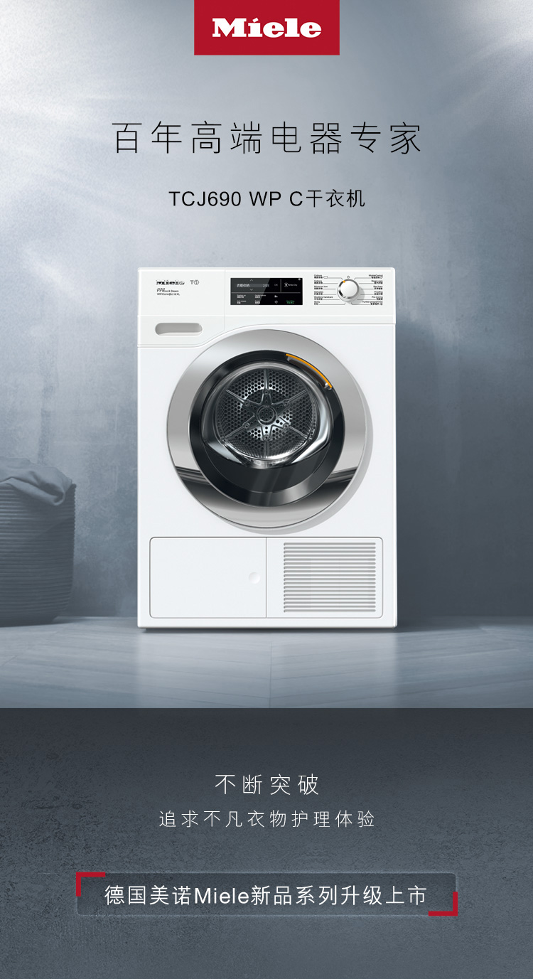 美诺(Miele)9公斤滚筒干衣机 欧洲进口 热泵节能 智能烘干 TCJ690 WP C 线下同款