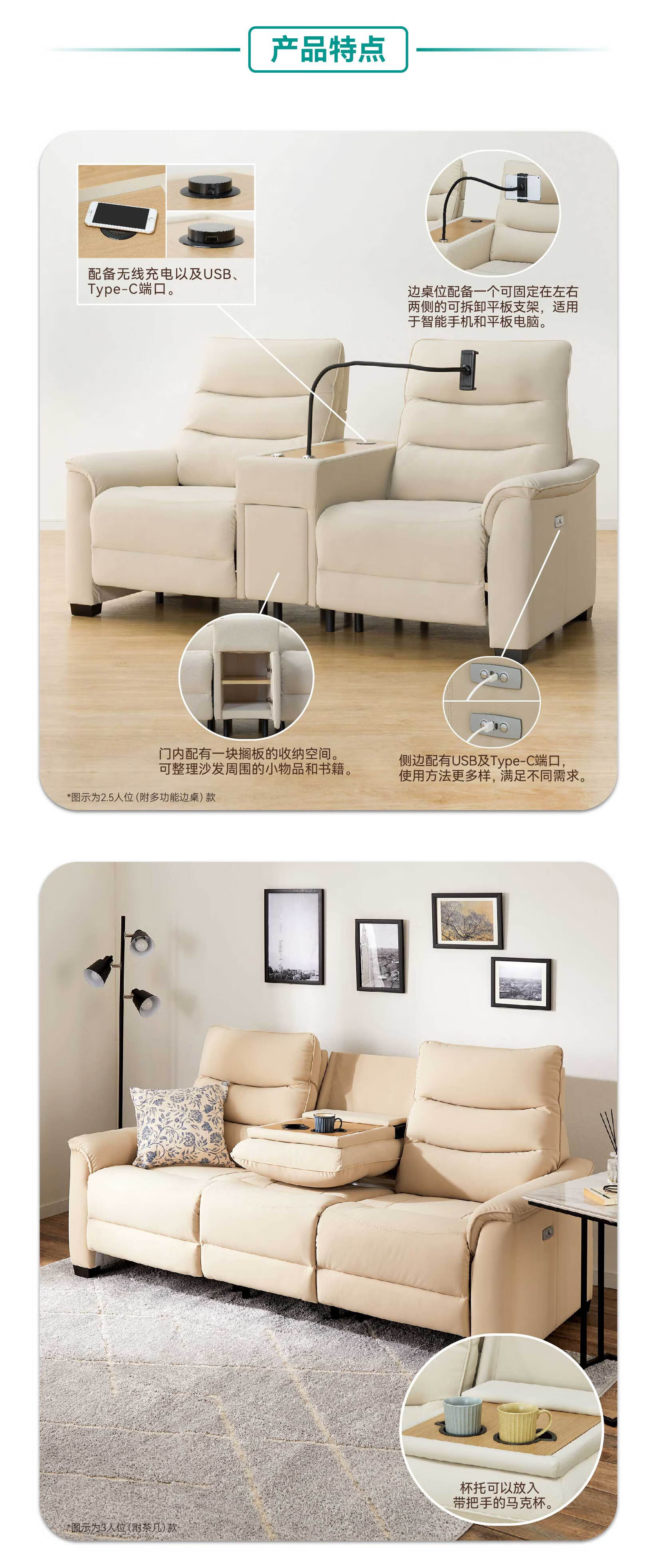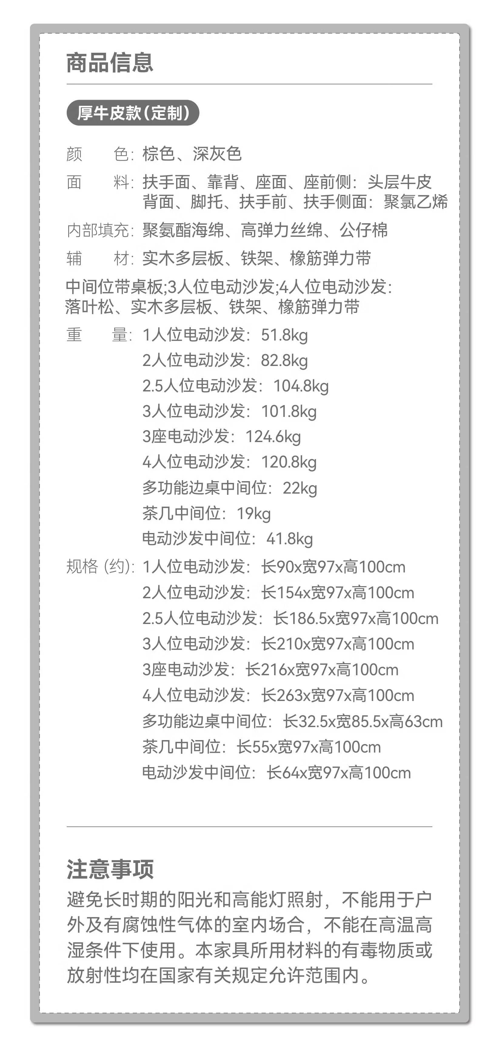 【家具】智能沙发多功能厚牛皮电动沙发彼利波5定制款