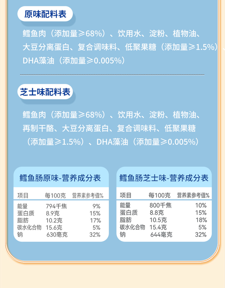 【味滋源】深海鳕鱼肠芝士味 150g 鱼肉火腿肠即食海味休闲解馋零食追剧小吃