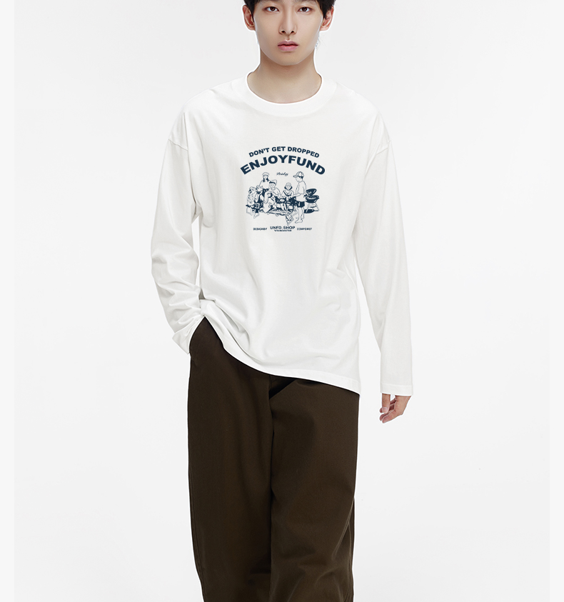 「棉的美学」美式街头风印花长袖~秋季宽松复古印花长袖情侣装