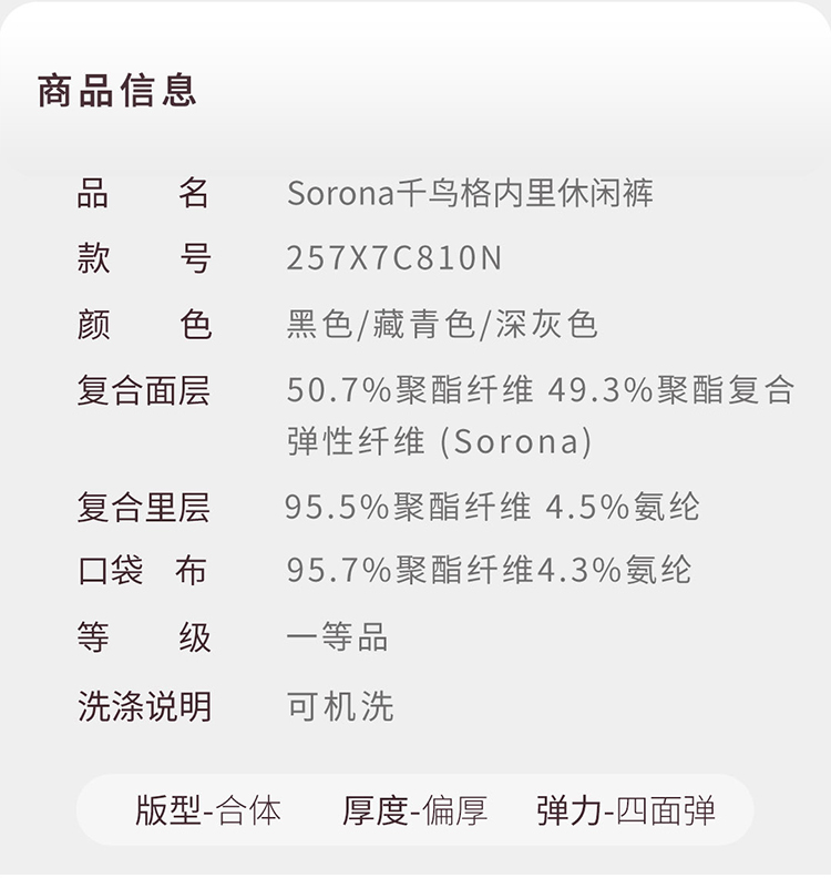 出行12号Sorona千鸟格内里休闲裤线下款