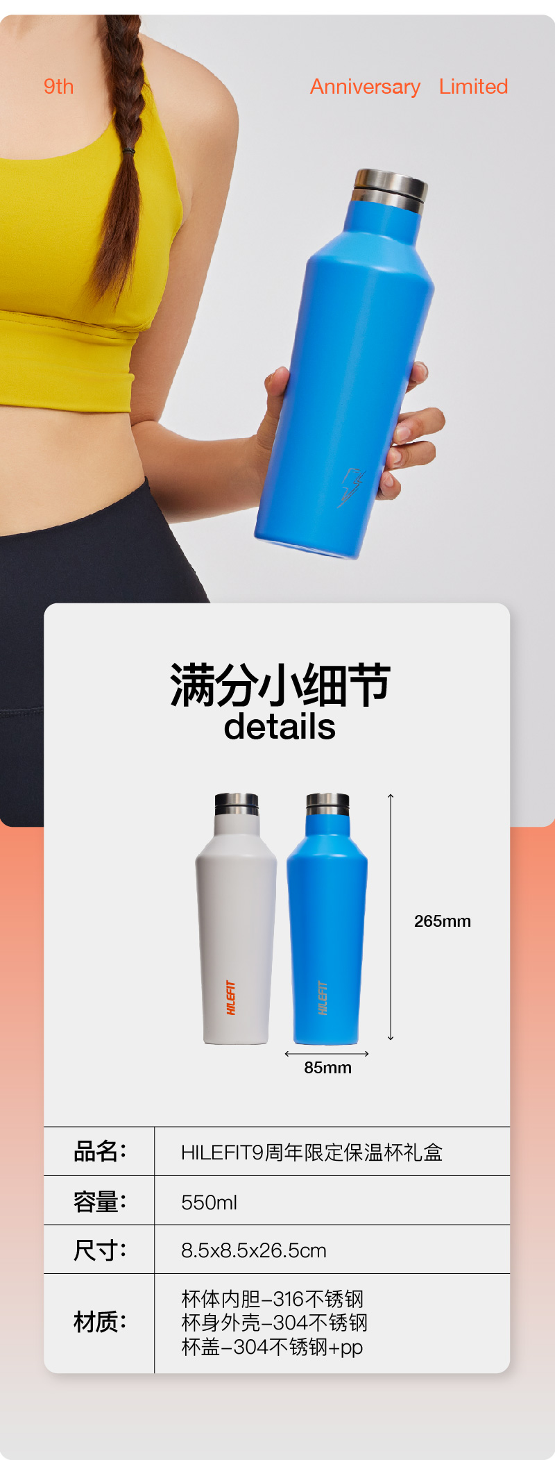 【HILEFIT】乐刻运动9周年保温杯礼盒蓝色-采购