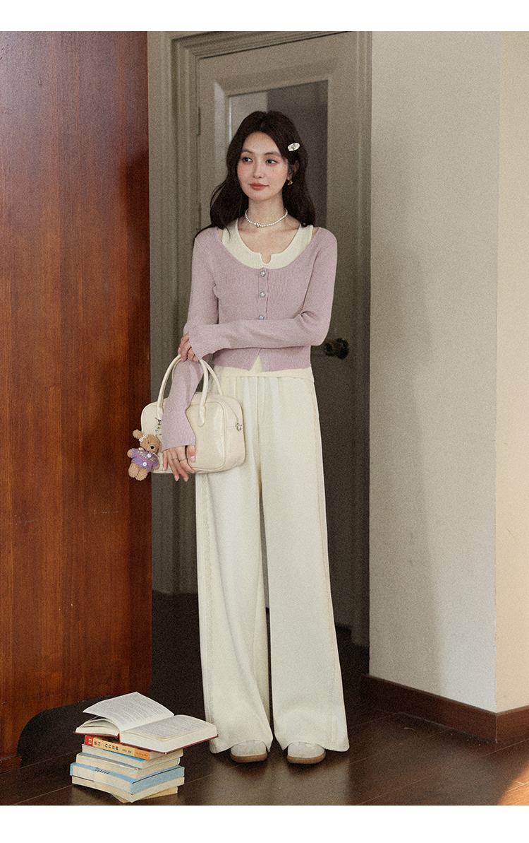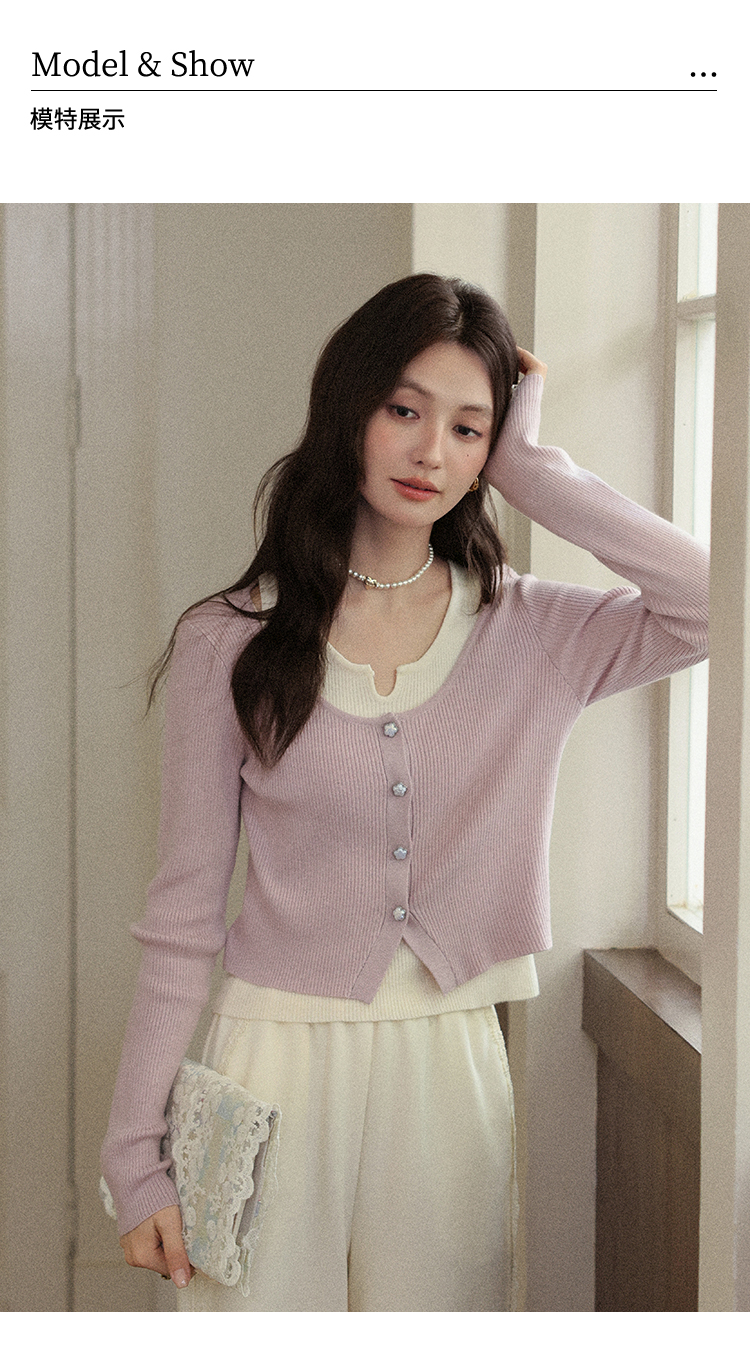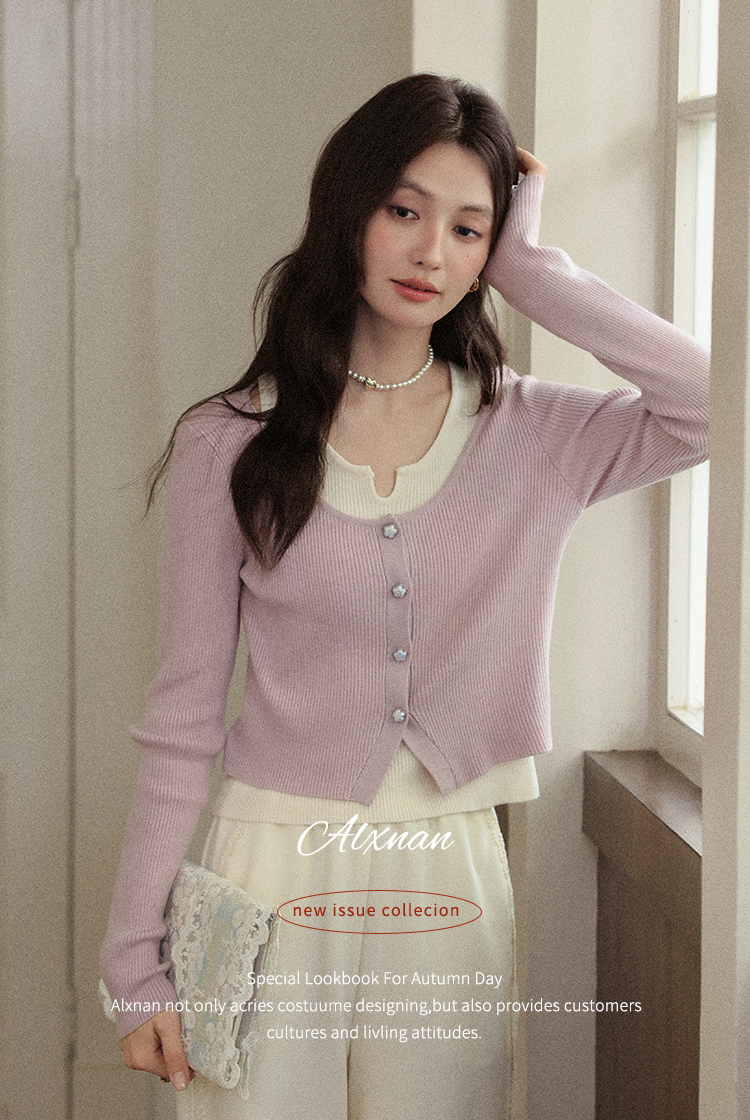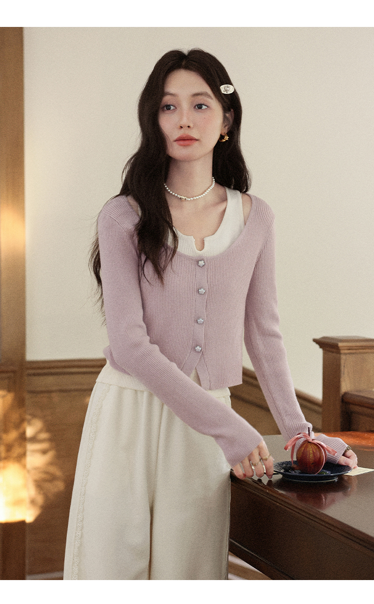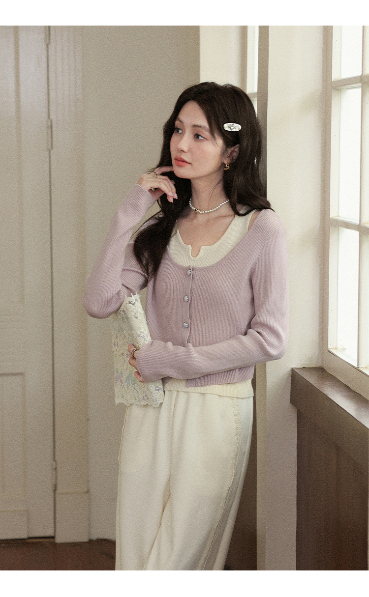 鹿向南「琉梦缀酪」假两件紫色长袖针织衫早秋新款慵懒感上衣女士