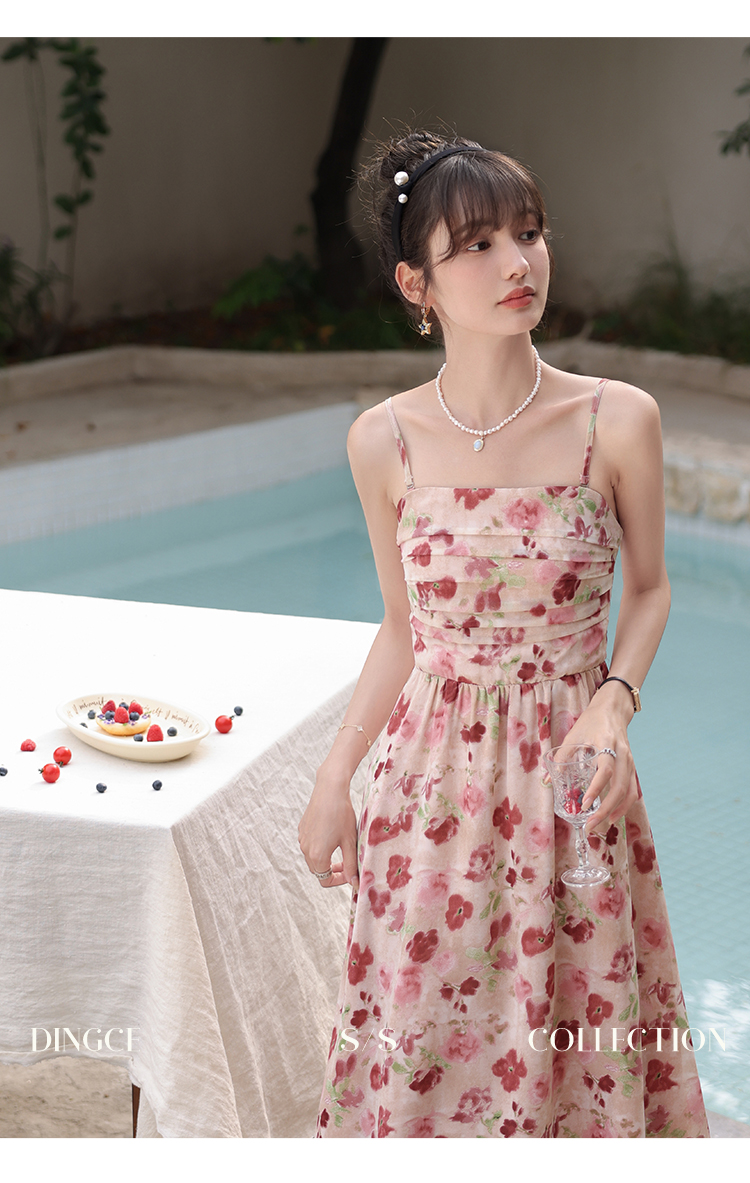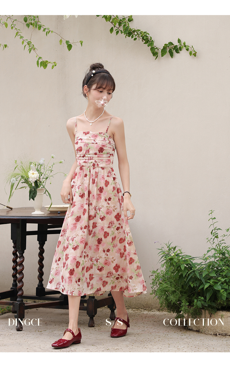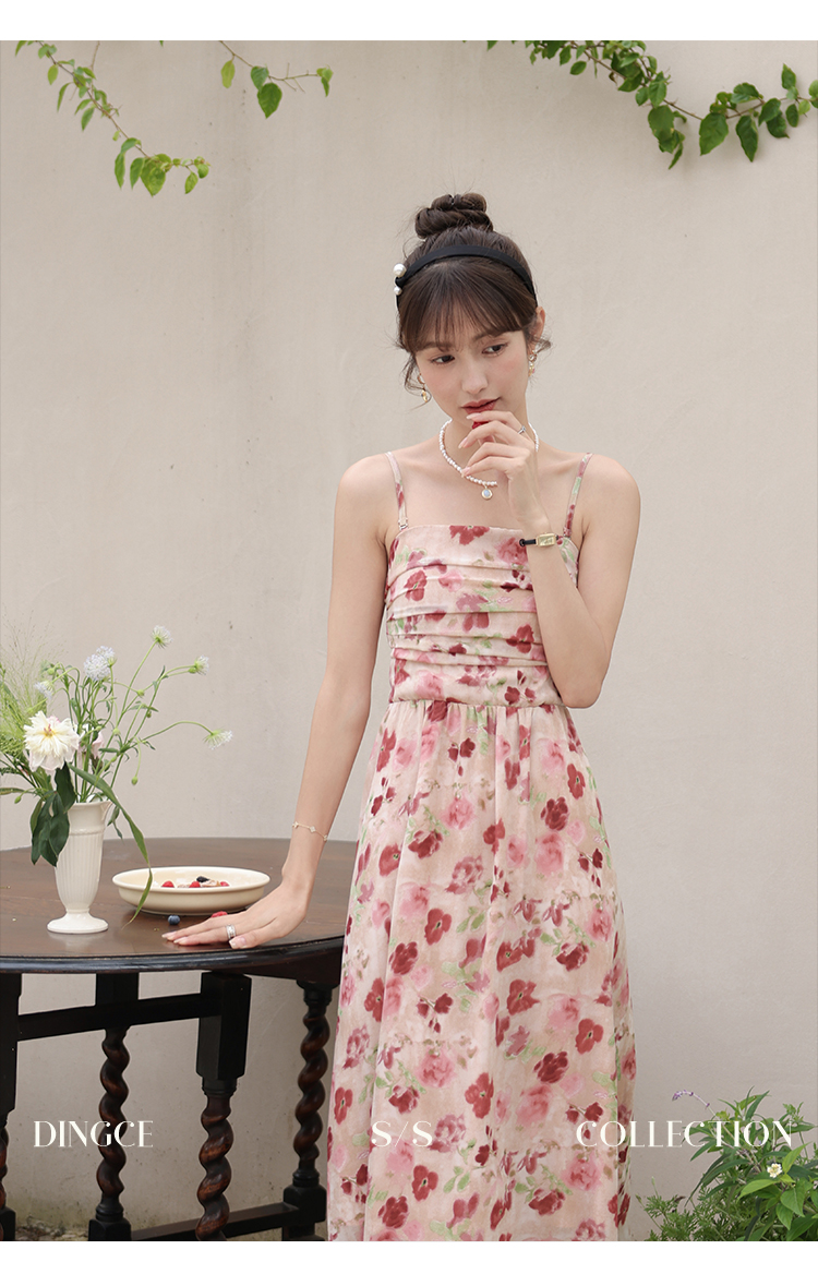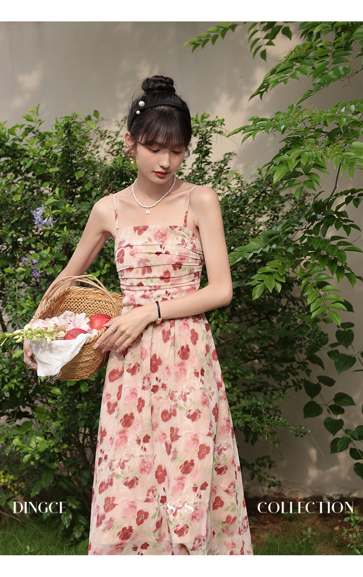 鹿向南 小个子《宁芙花园》法式碎花吊带连衣裙DC00507