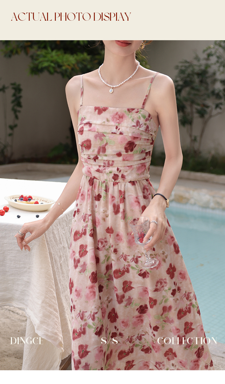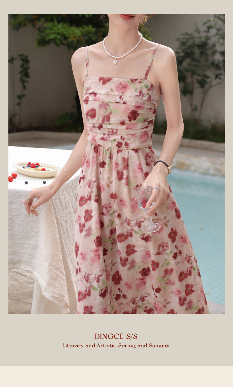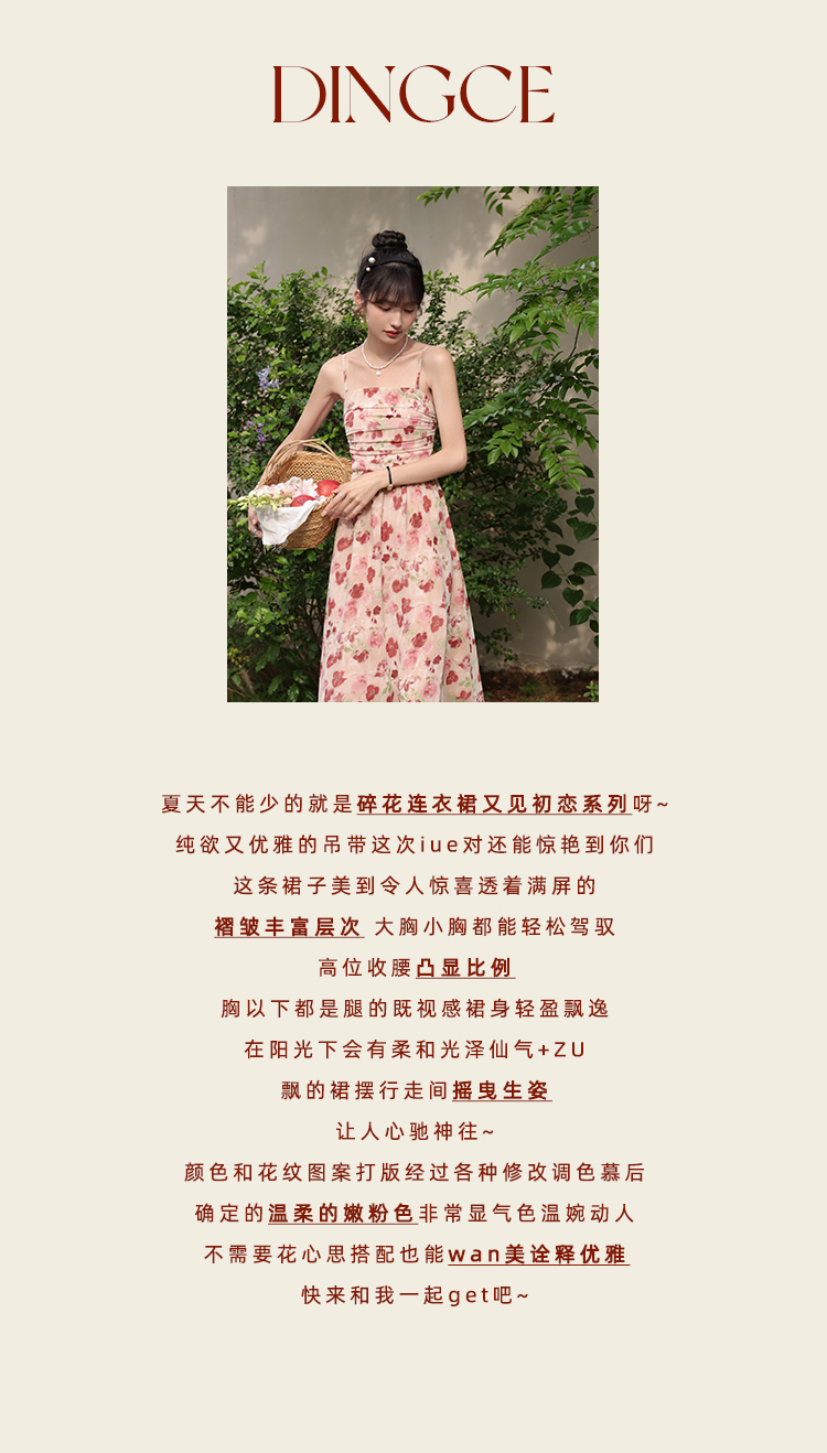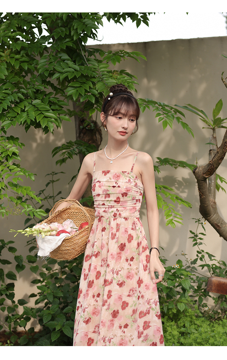 鹿向南 小个子《宁芙花园》法式碎花吊带连衣裙DC00507