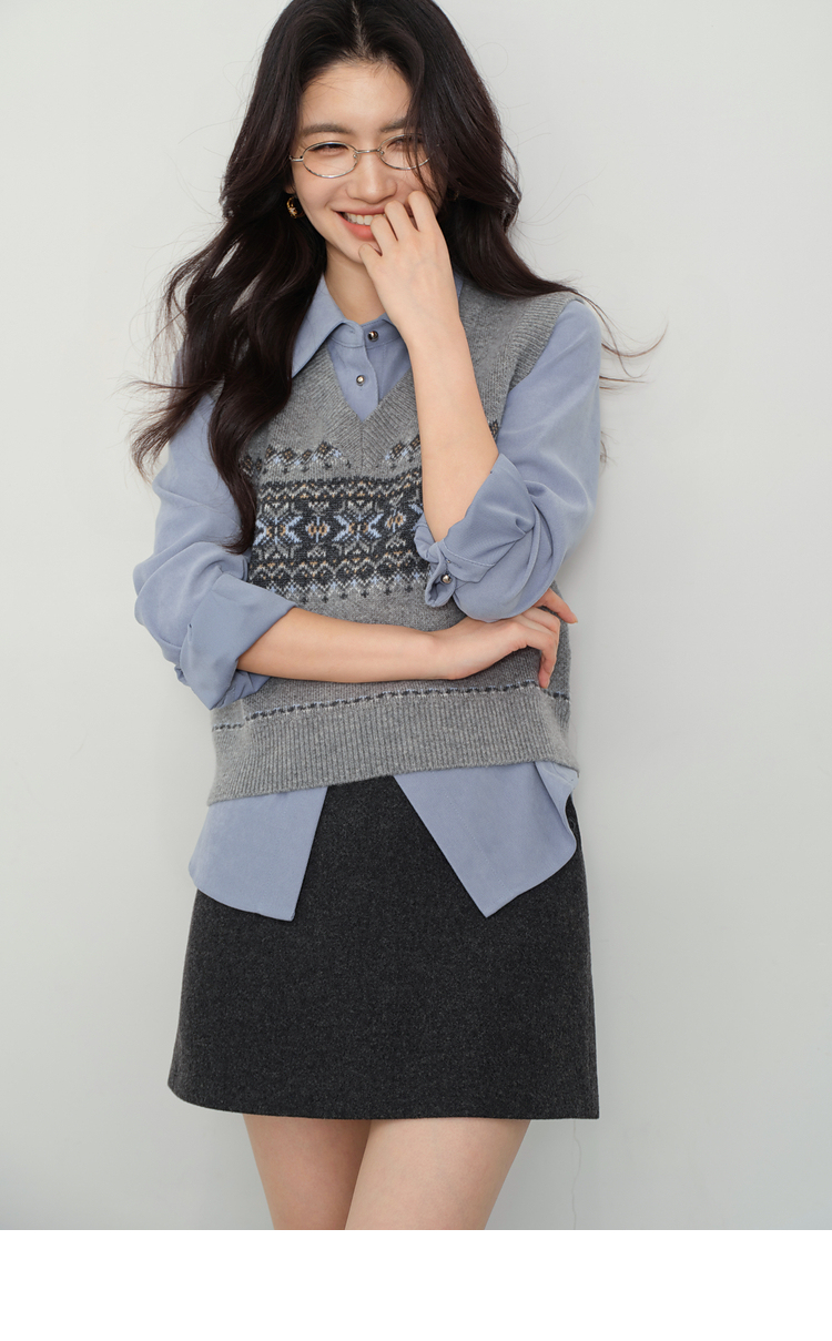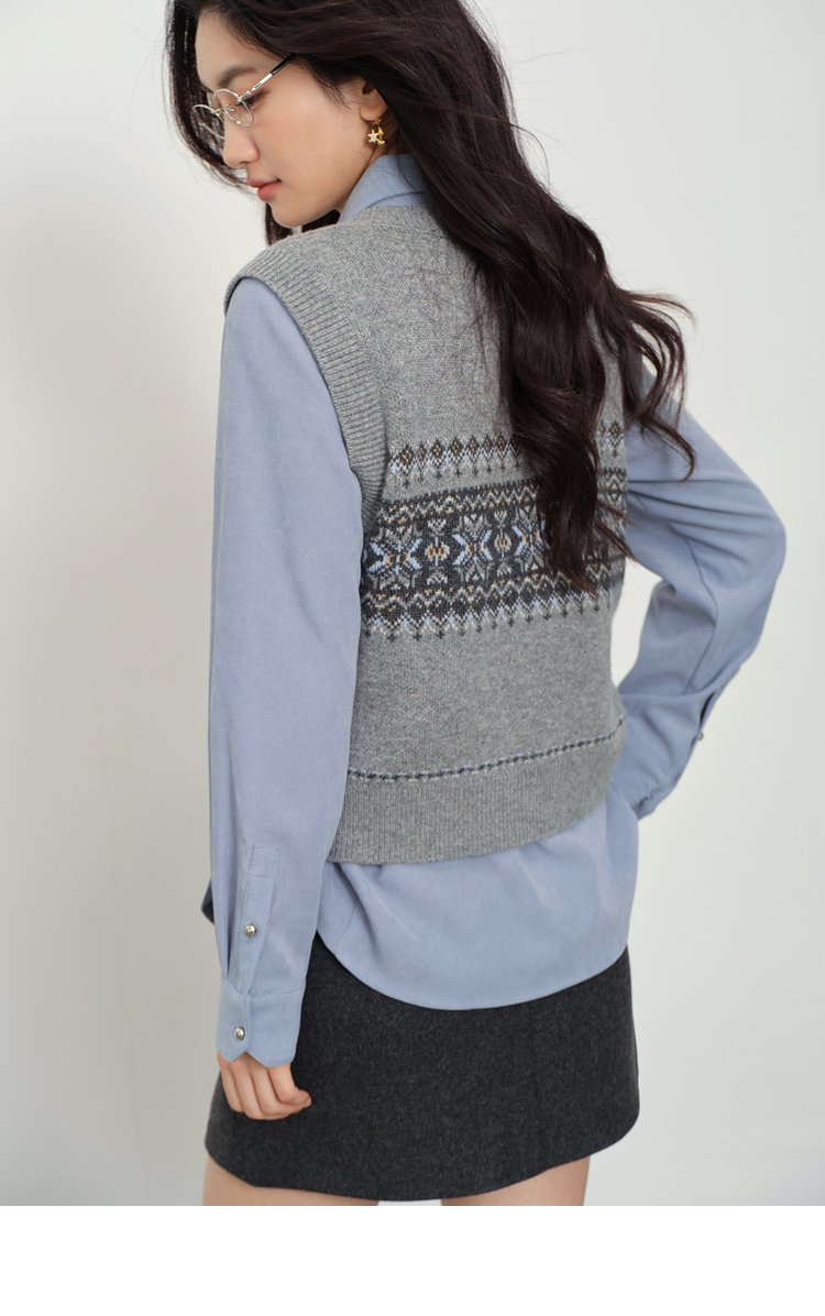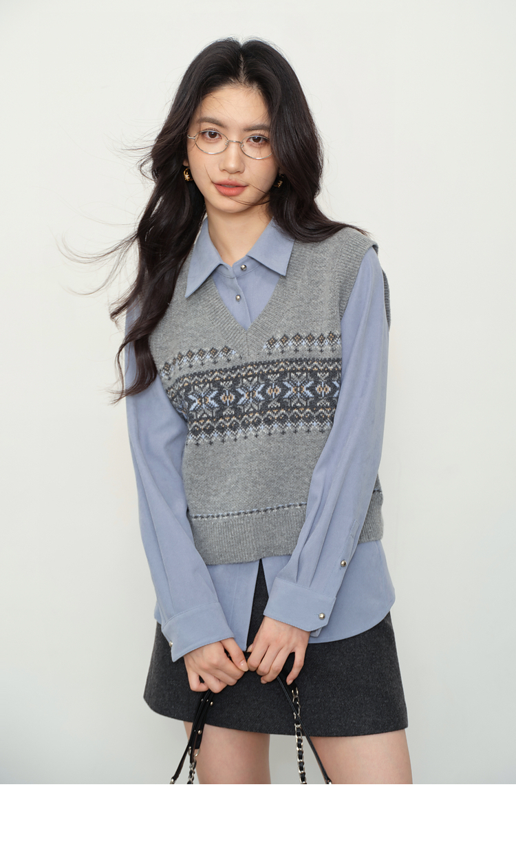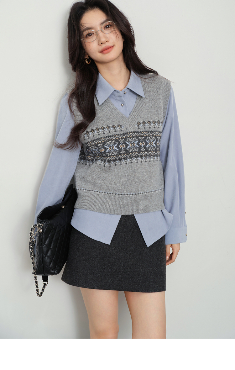 鹿向南「蔚蓝书封」雾霾蓝polo领休闲衬衫女秋季新款气质长袖衬衣