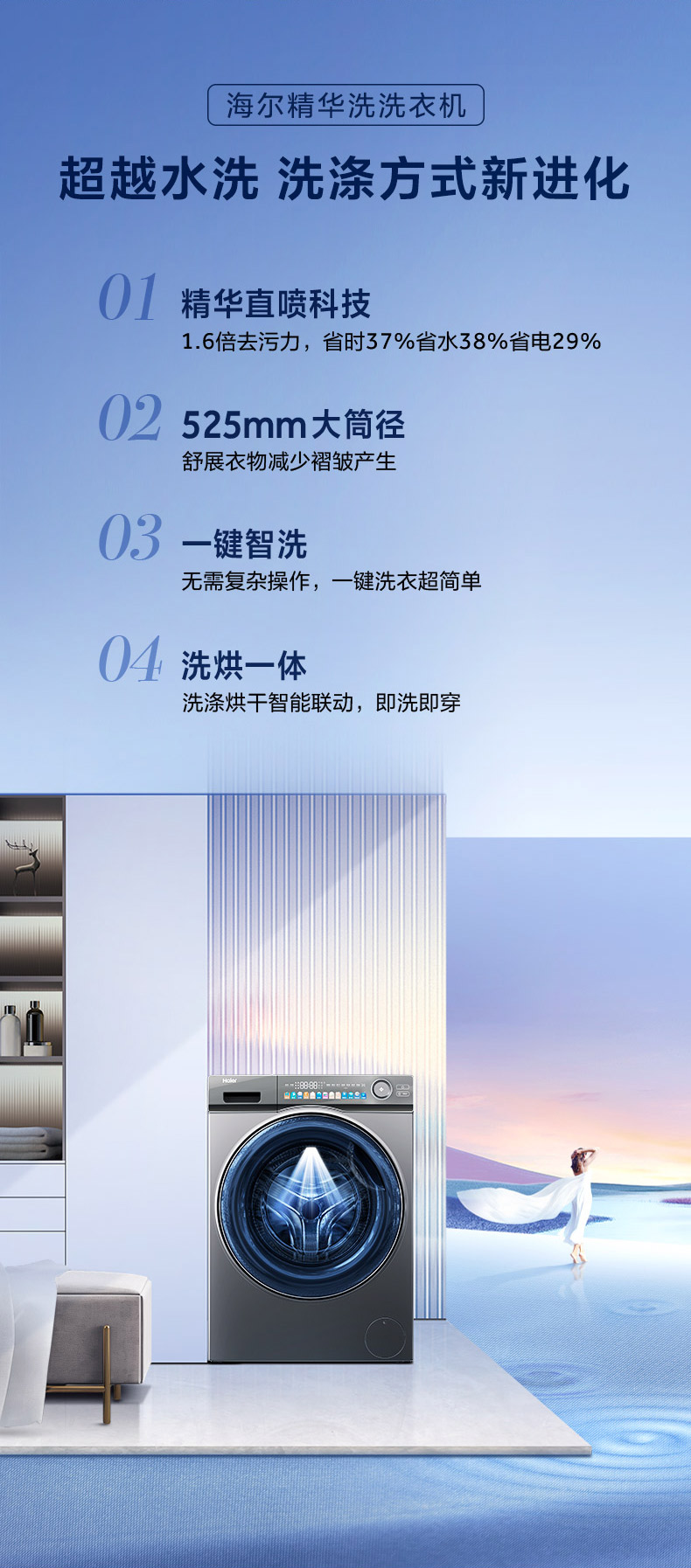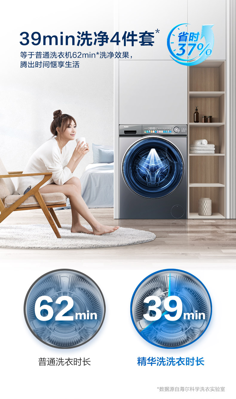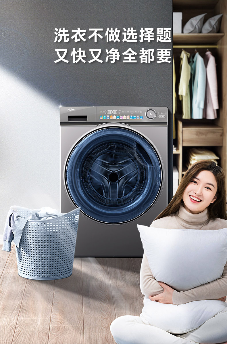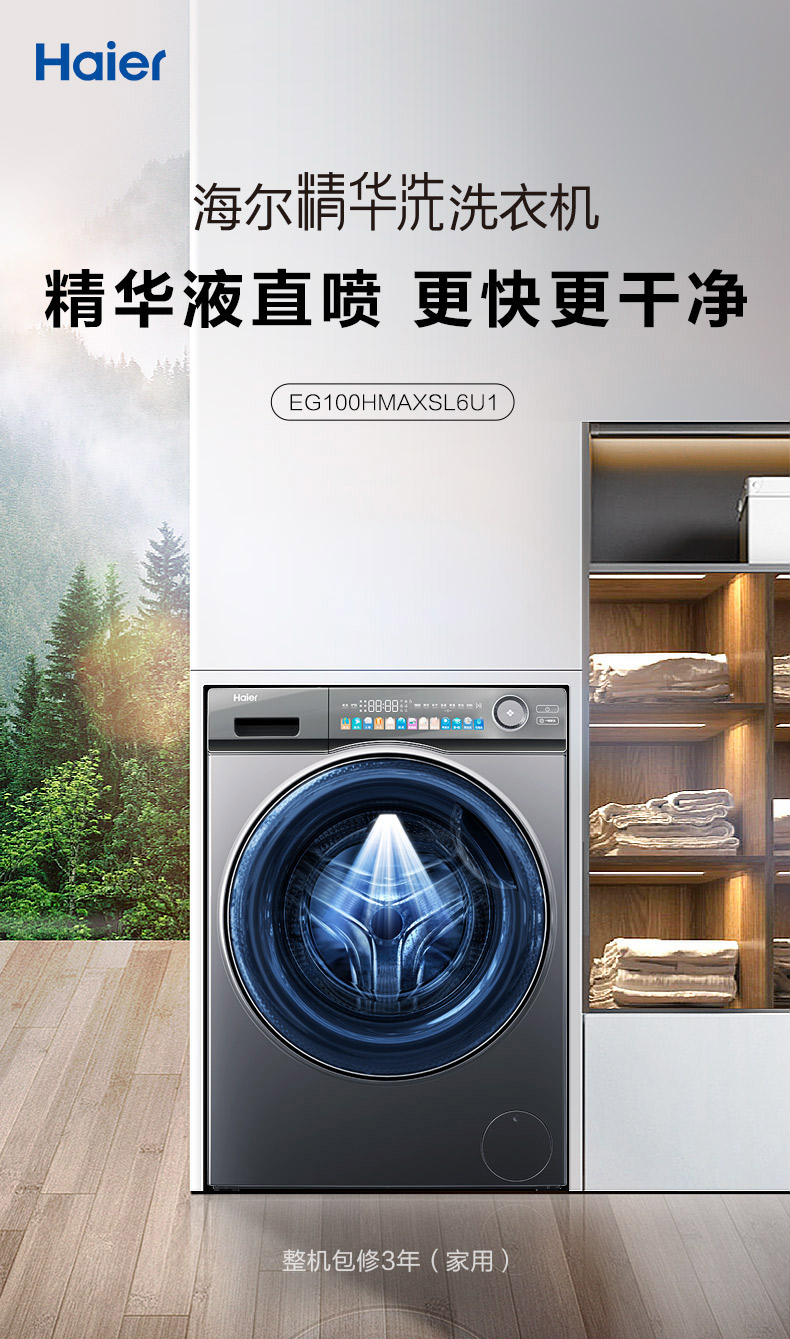 【精华洗】海尔10kg大容量滚筒洗衣机家用全自动洗烘一体变频EG100HMAXSL6U1
