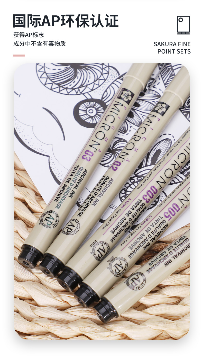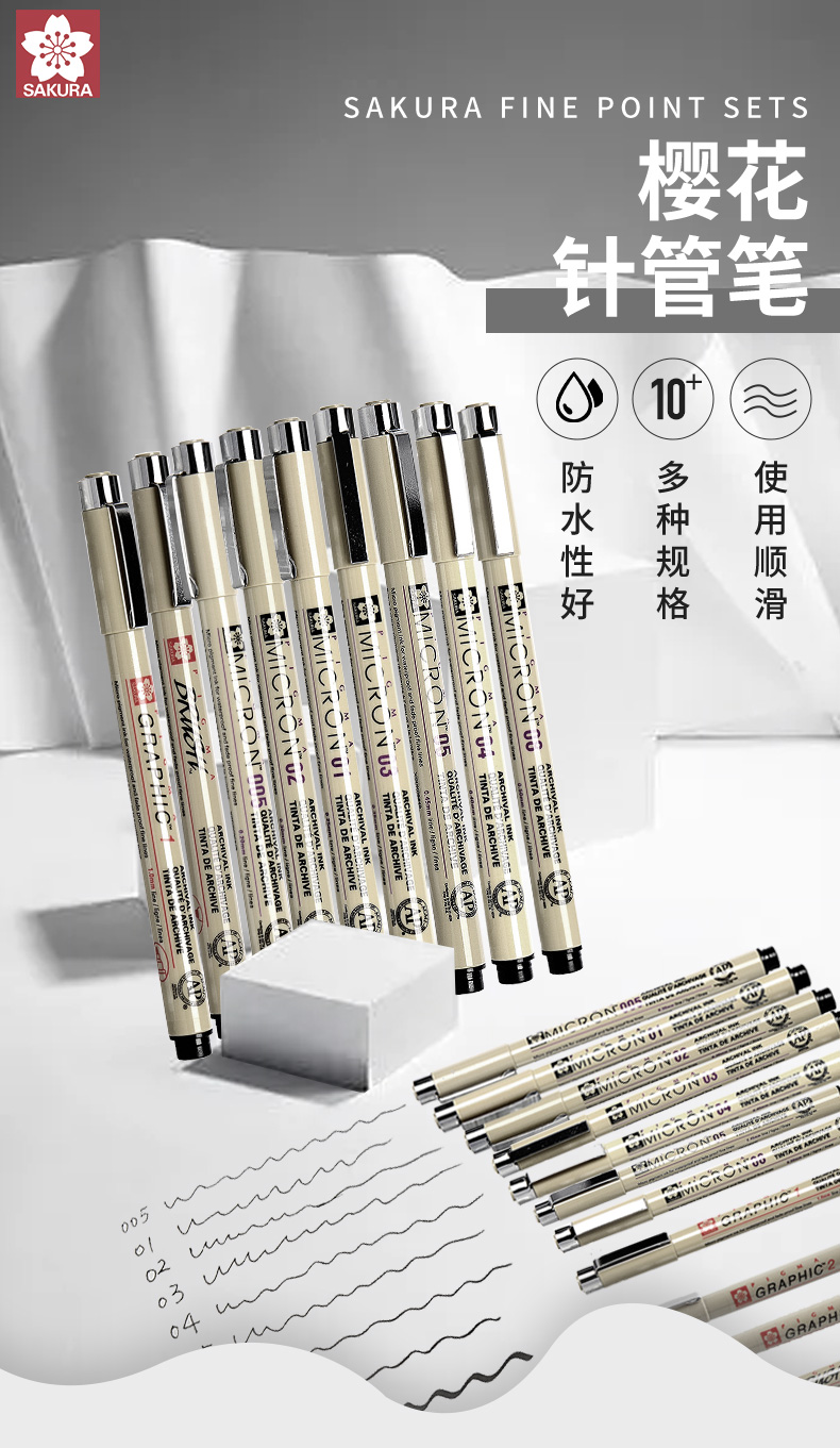 樱花(SAKURA)针管笔勾线笔 6支漫画套装 黑色签字笔日本进口绘图水笔 学生儿童美术绘画描边手绘设计_MW
