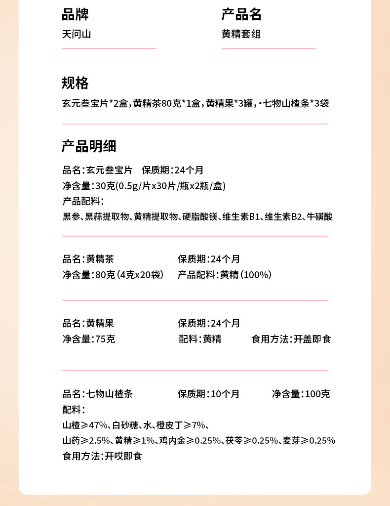 【精选搭配】天问山 黄精产品组合装 玄元叁宝片*2盒+黄精果*3罐+黄精茶80克白盒*1+七物山楂条3袋