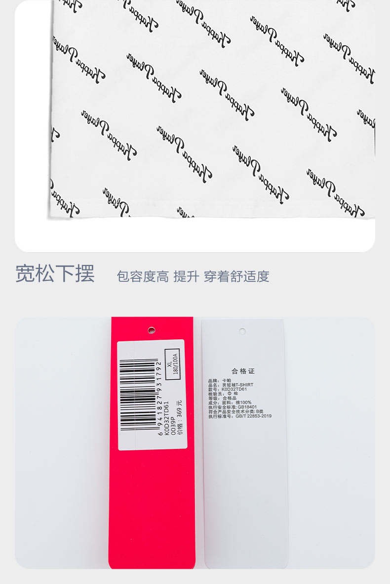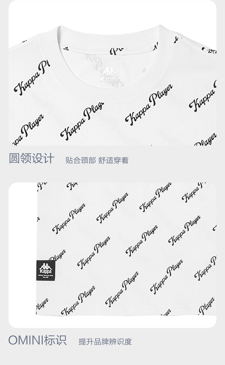 Kappa卡帕满印短袖2023新款男运动T恤休闲针织圆领短袖K0D32TD61