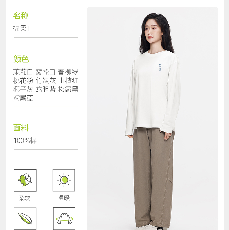 「棉的美学」圆领长袖打底衫T恤秋冬新款内外穿百搭宽松休闲上衣