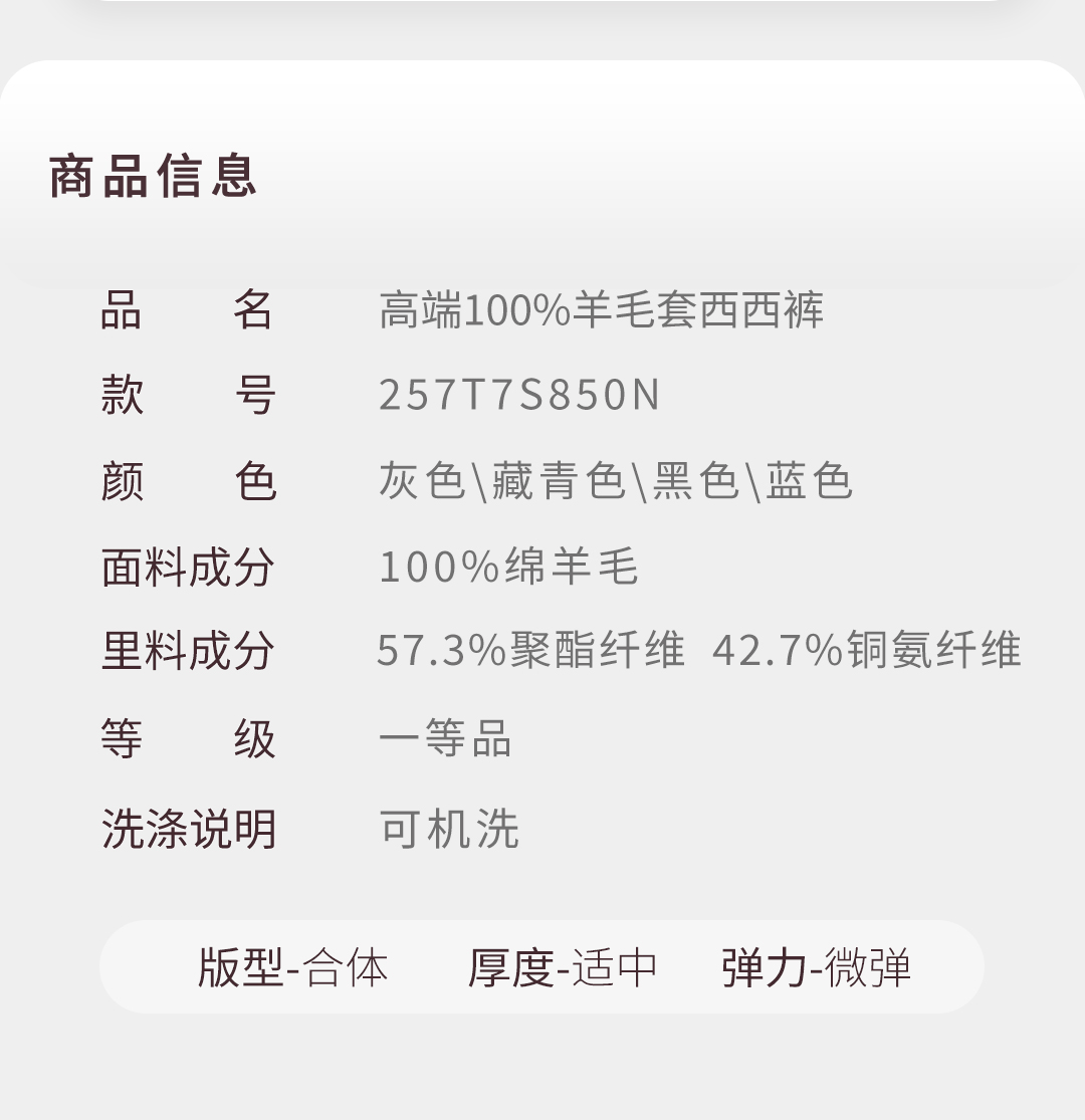 【大师21号】高端100%羊毛套西西裤257T7S850N[门店专款]