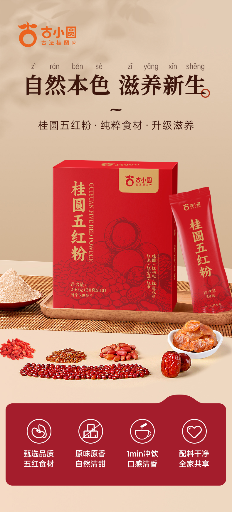 古小圆 古法桂圆五红粉200g/盒*3 纯粹食材,滋养新生