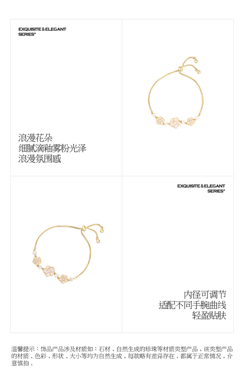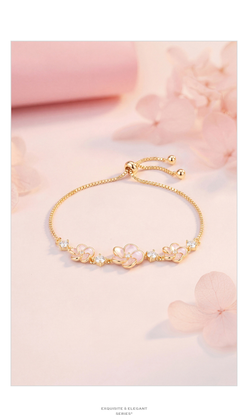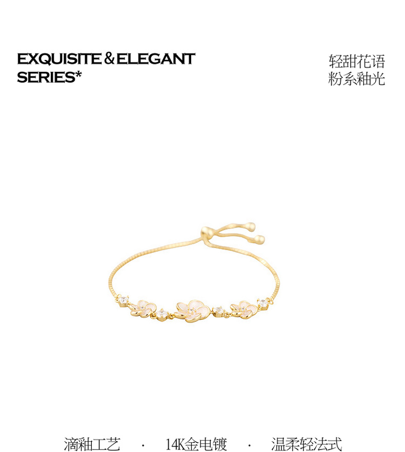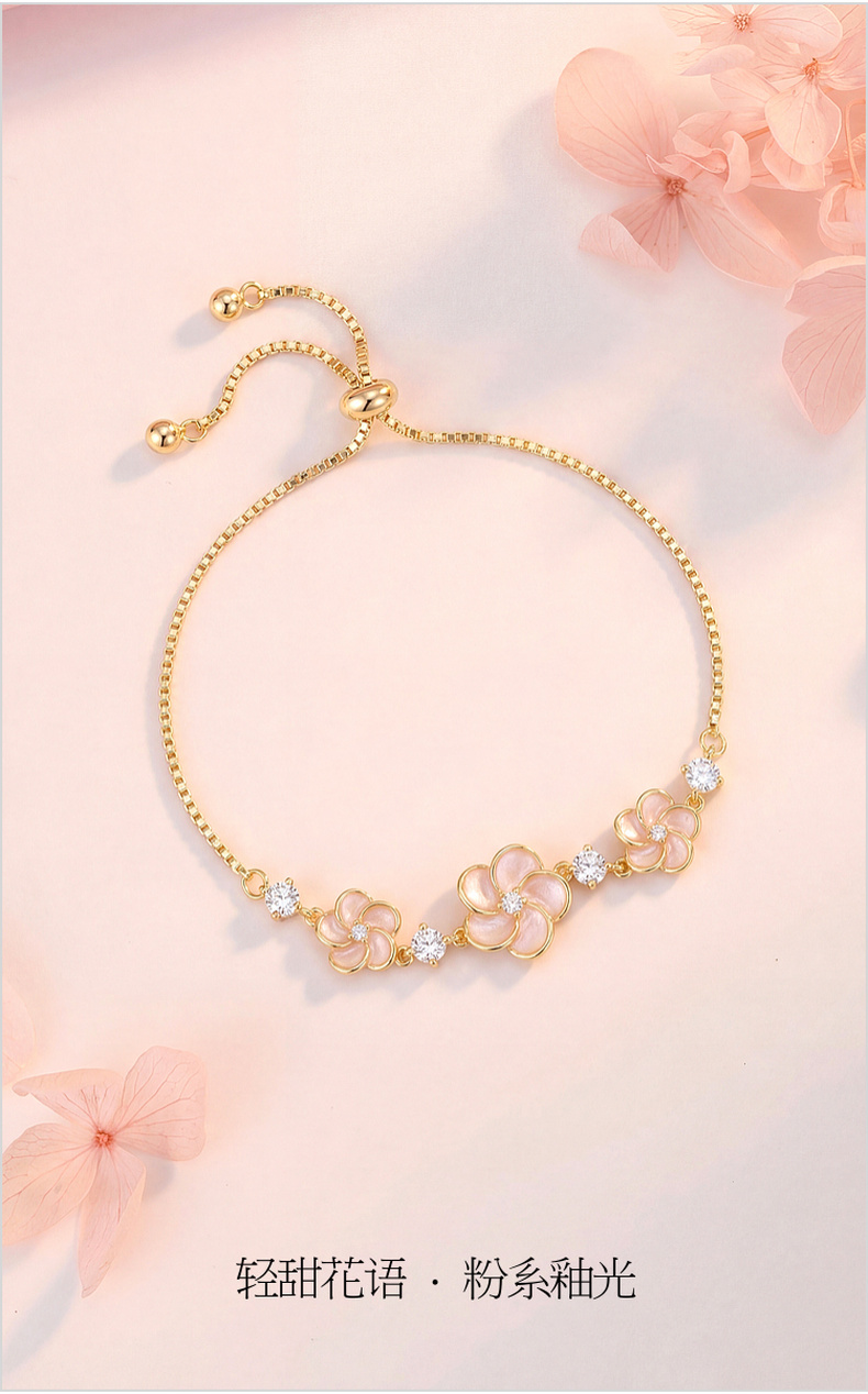 三彩2026新款浅粉滴釉立体花朵手链甜美轻法式温柔氛围感约会小众