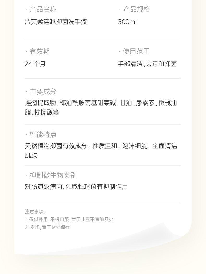 洁芙柔抑菌家用儿童水洗洗手液300ml
