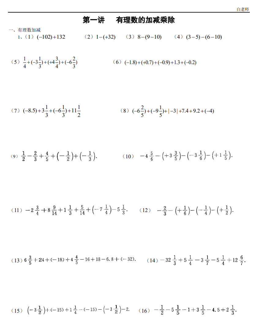❇️有理数计算专题课:校内六上知识点,课程会详细讲解正负号、相反数、绝对值、四则混合运算等内容。课程分层递进,从“同号相加”到“混合括号”,再到“乘方与运算综合”,有理数计算作为初中代数的入门,是绝对要攻克的一关。