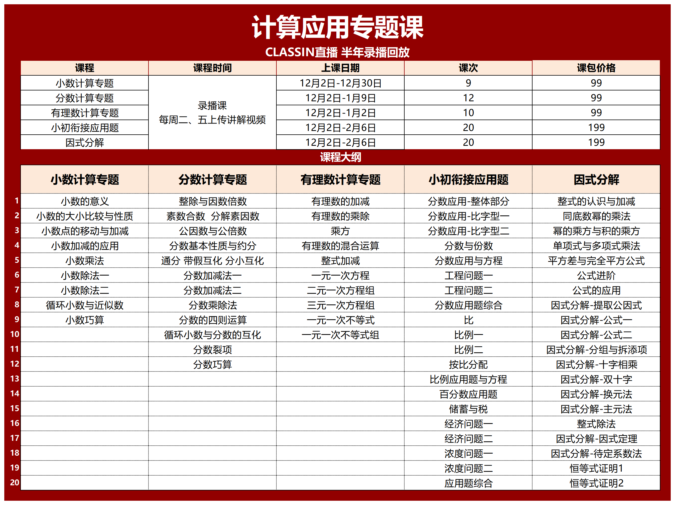 ❇️小数计算专题课:校内四下知识点,课程内容涵盖小数四则运算、近似处理、循环小数转化等核心知识点,帮助学生夯实计算基础,提升准确率。课程注重方法教学与易错点分析,通过分层练习与即时反馈,有效减少粗心失误,为后续学习打下坚实根基。