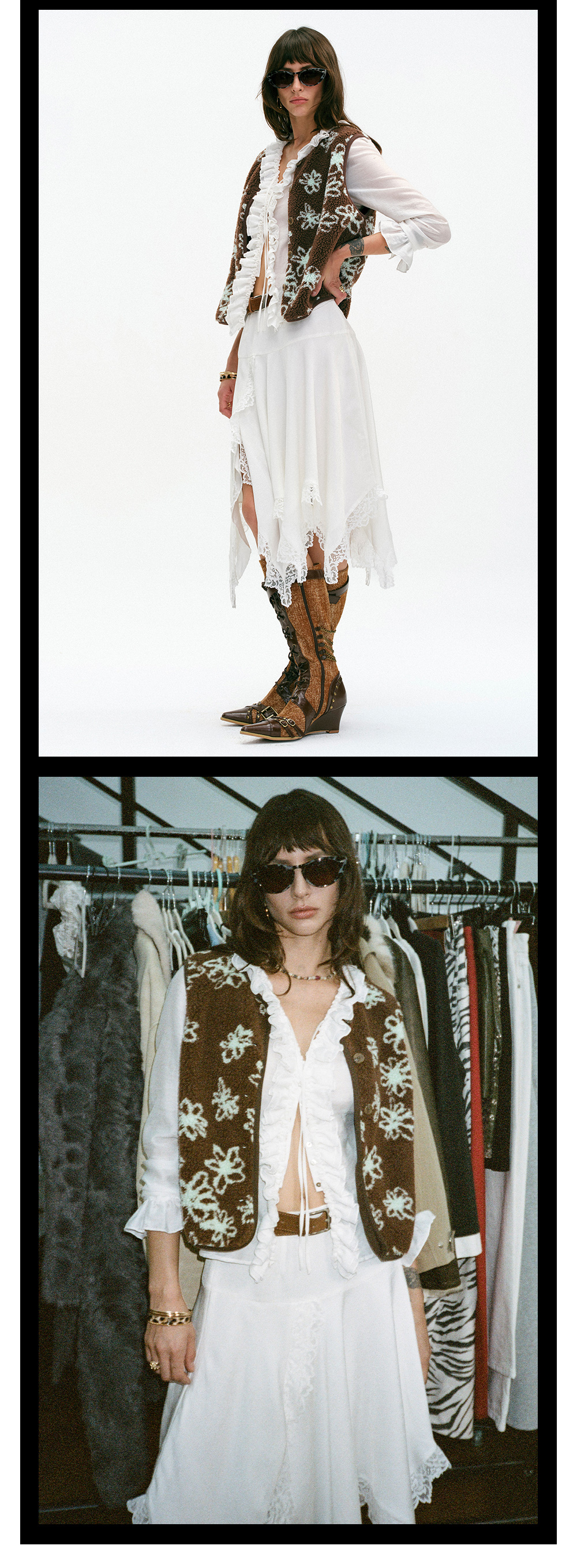 TR她热 斑点狗 黑白斑点印花雪尼尔油蜡皮腰带复古A字短裙裤