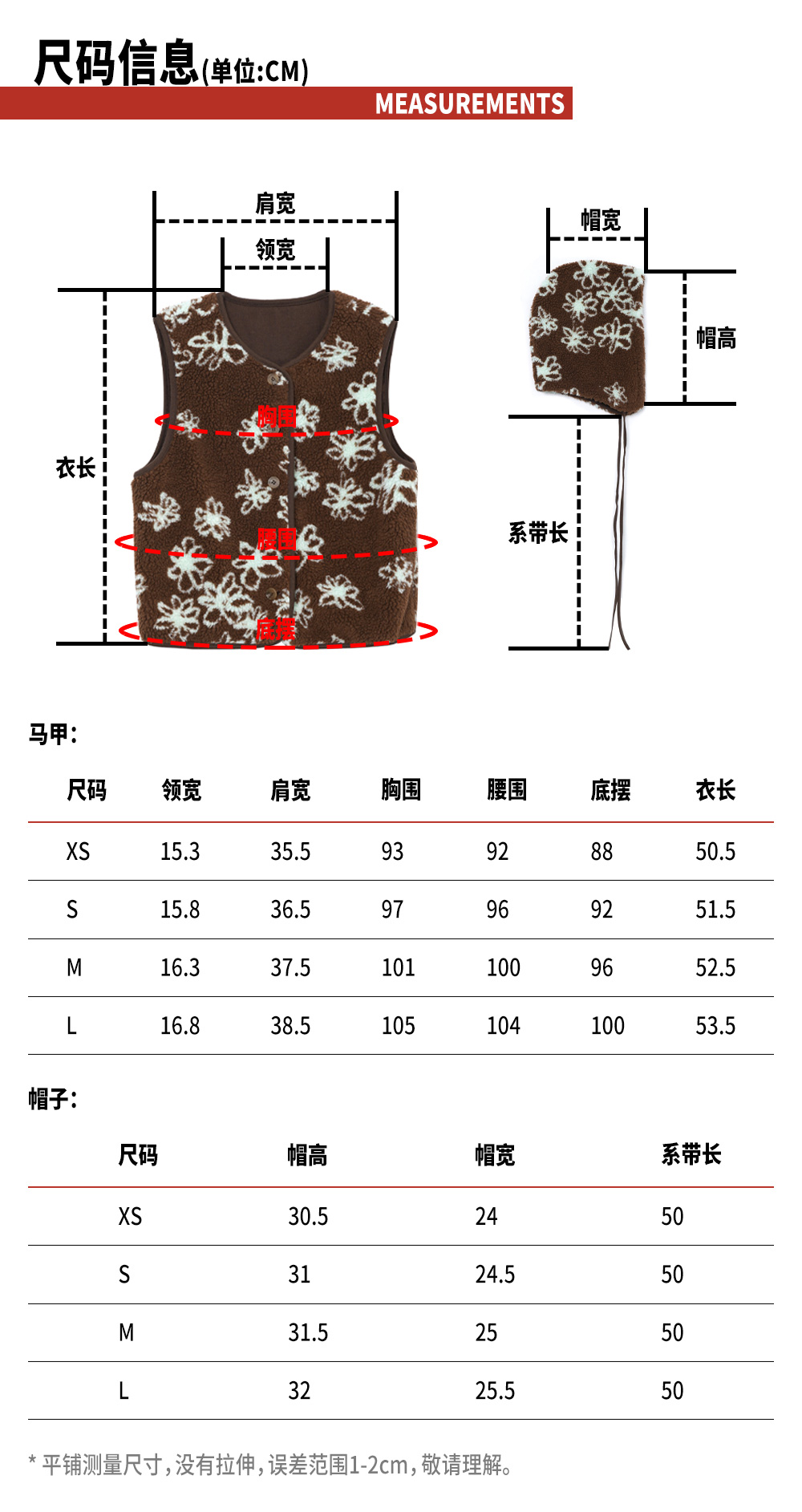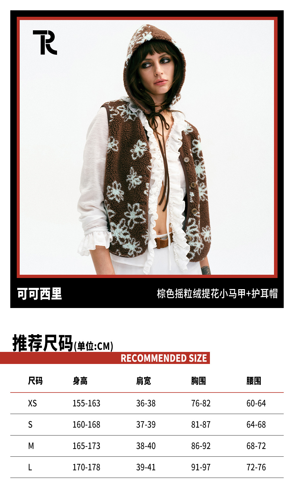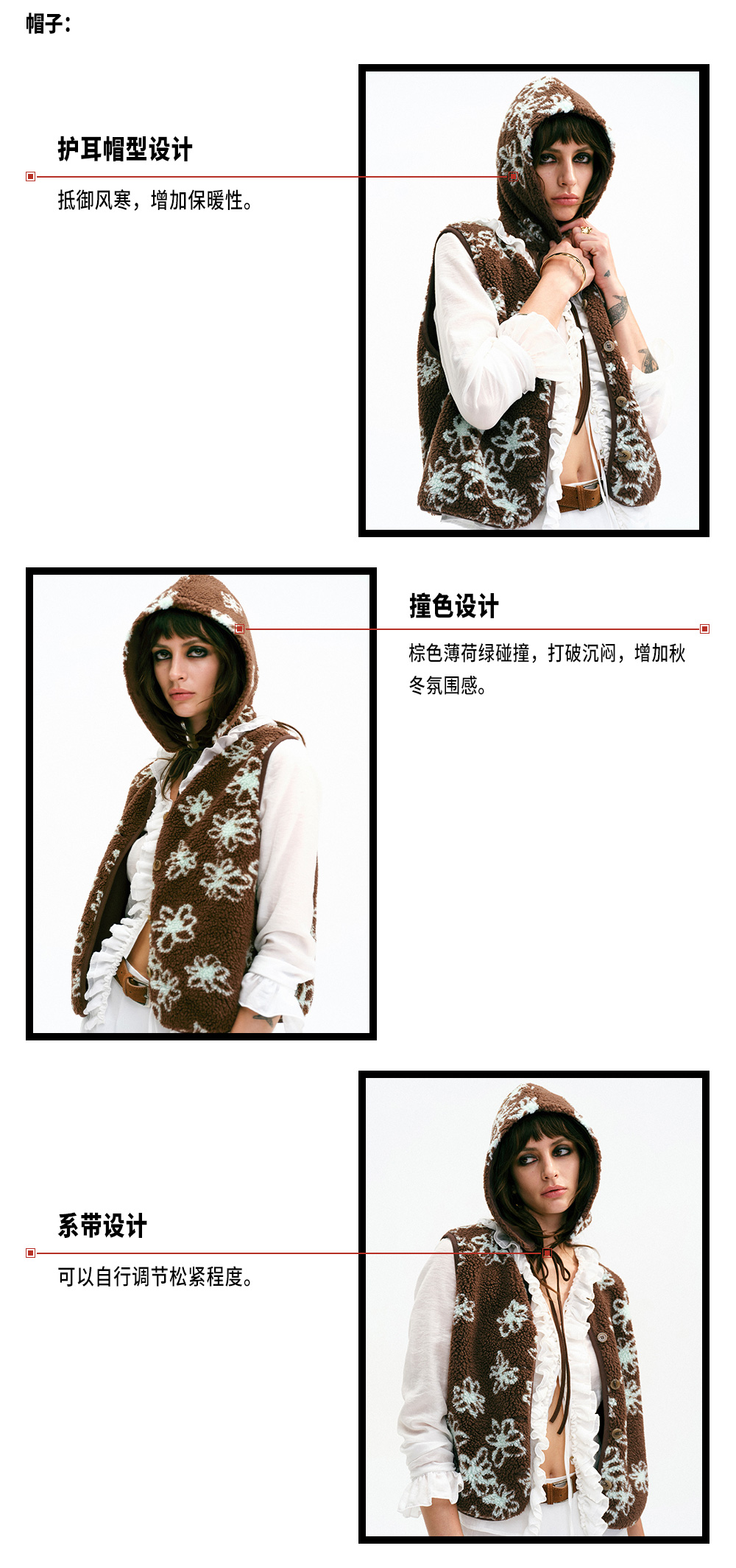 TR她热 可可西里 棕色薄荷绿撞色摇粒绒休闲提花护耳帽马甲