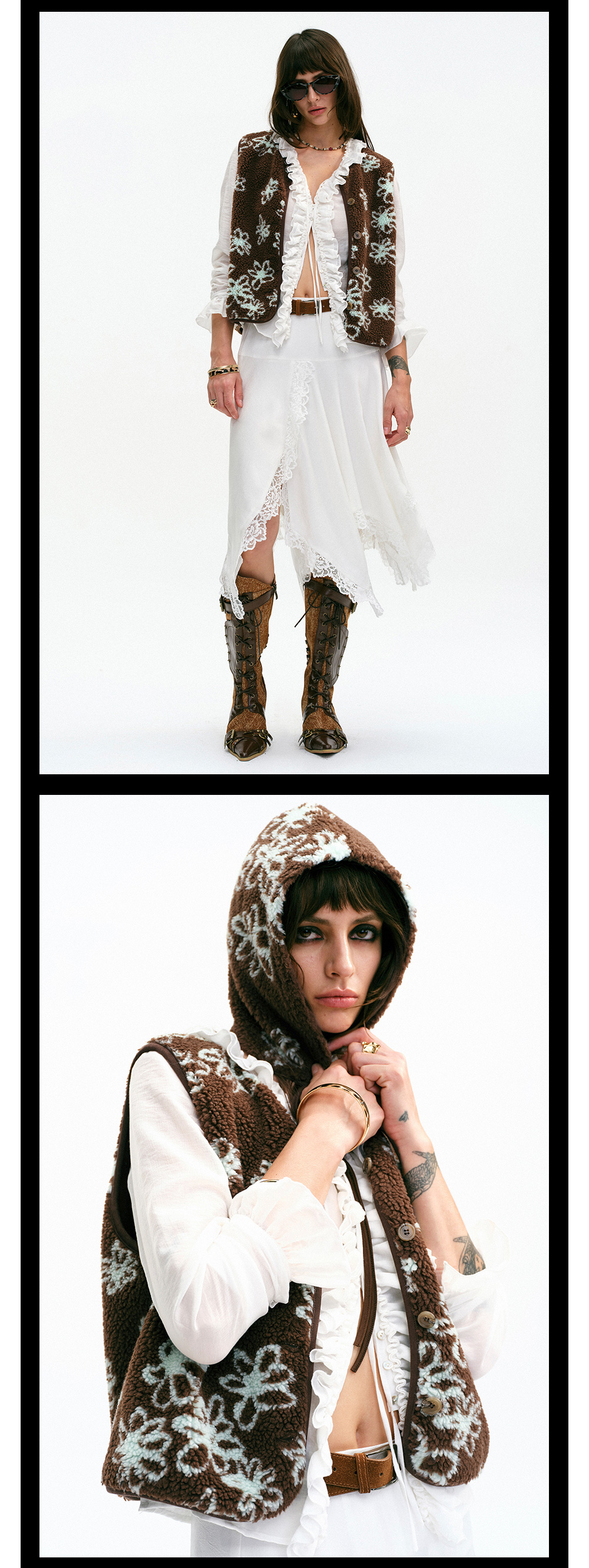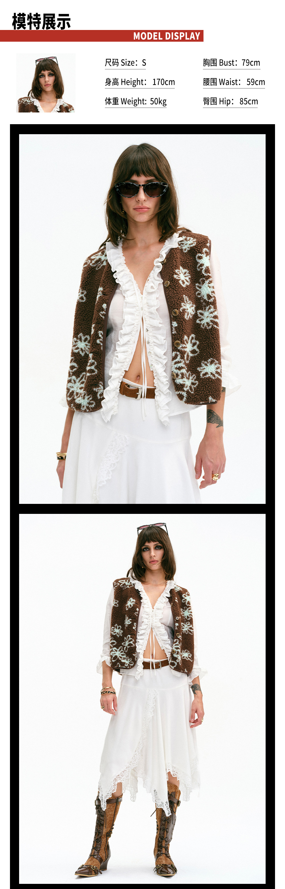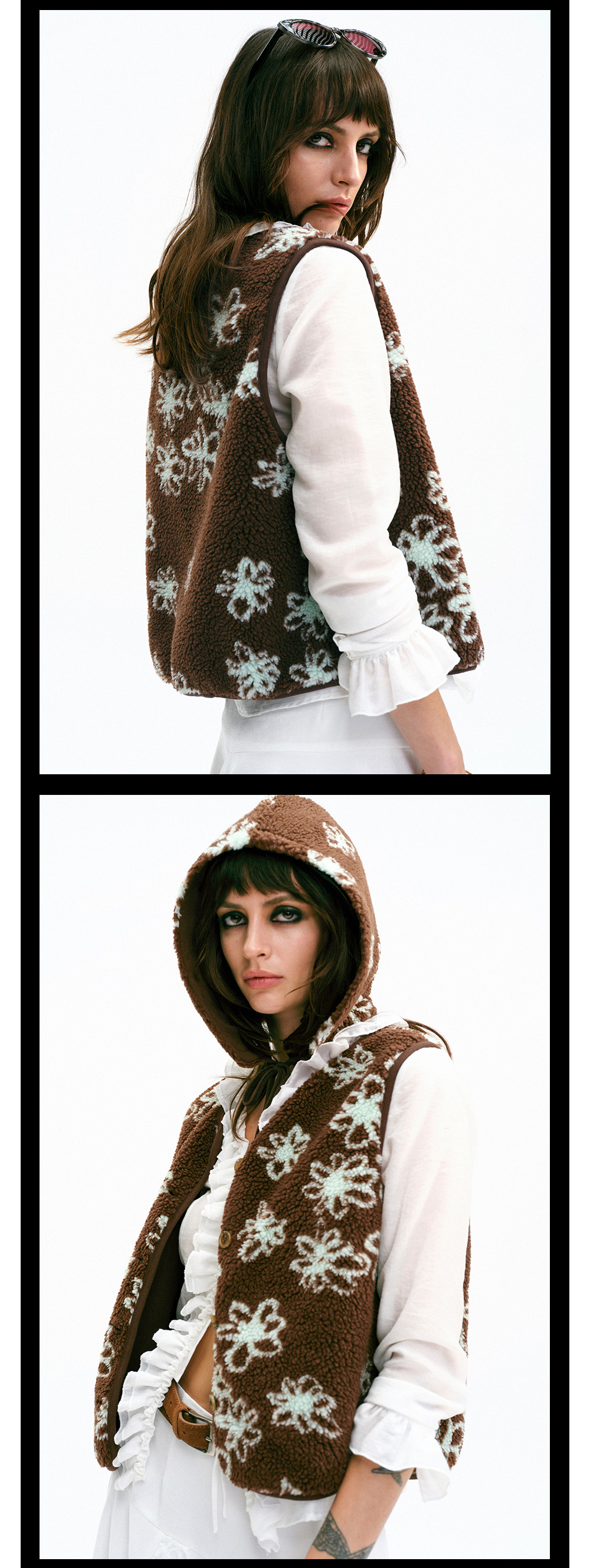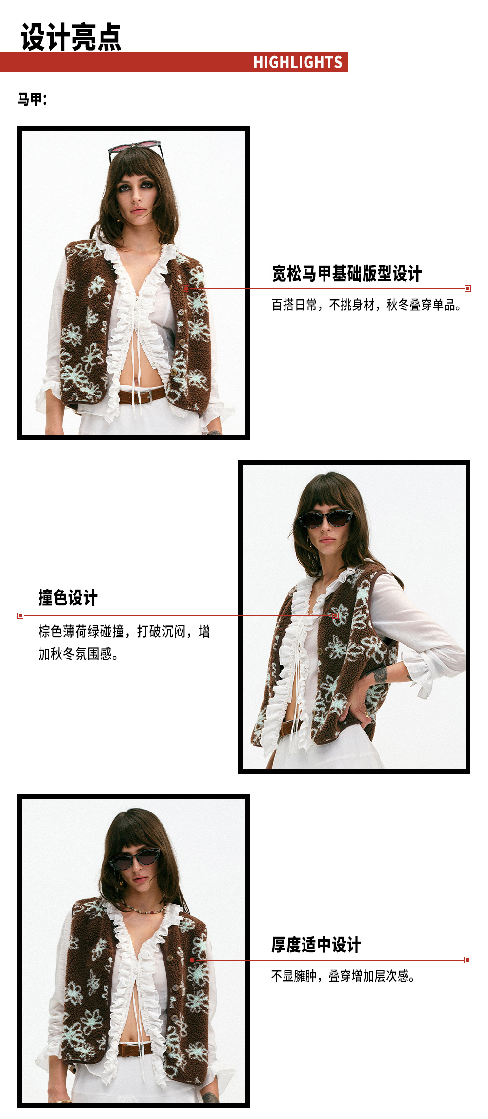 TR她热 可可西里 棕色薄荷绿撞色摇粒绒休闲提花护耳帽马甲
