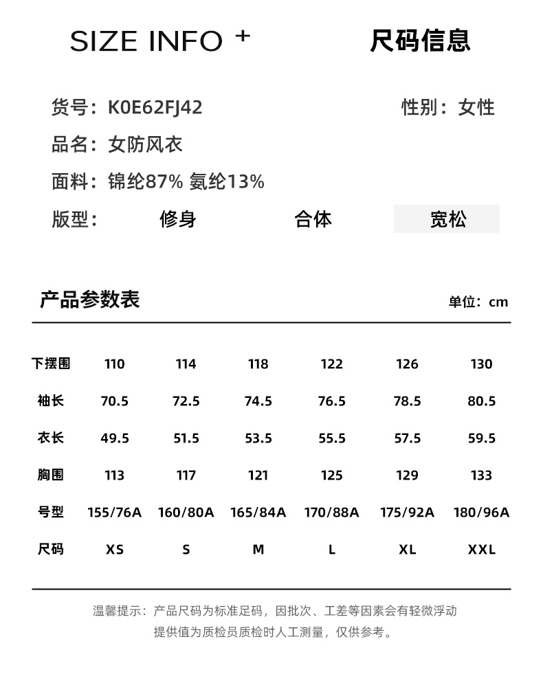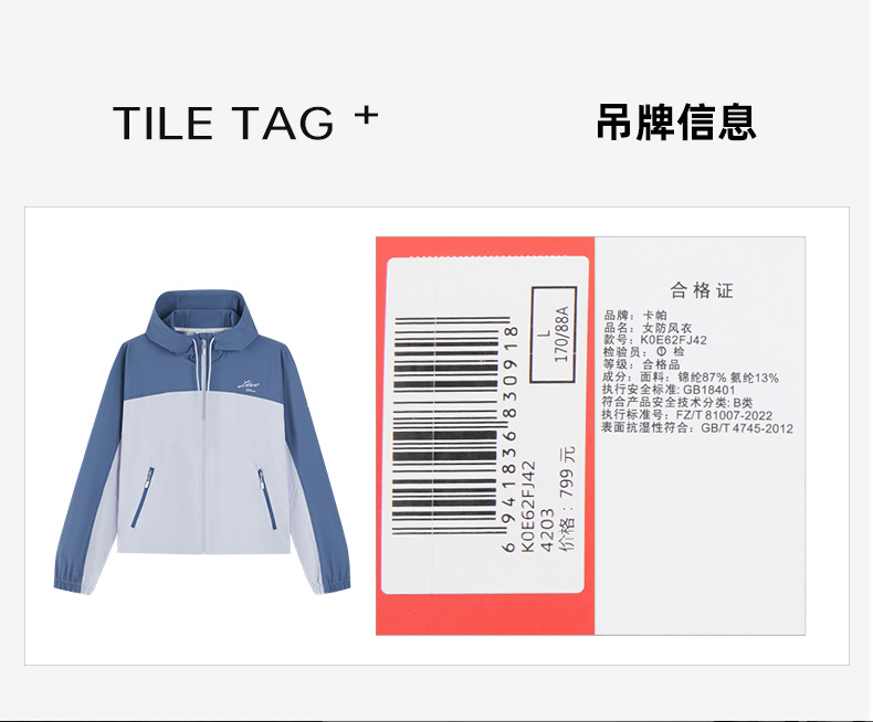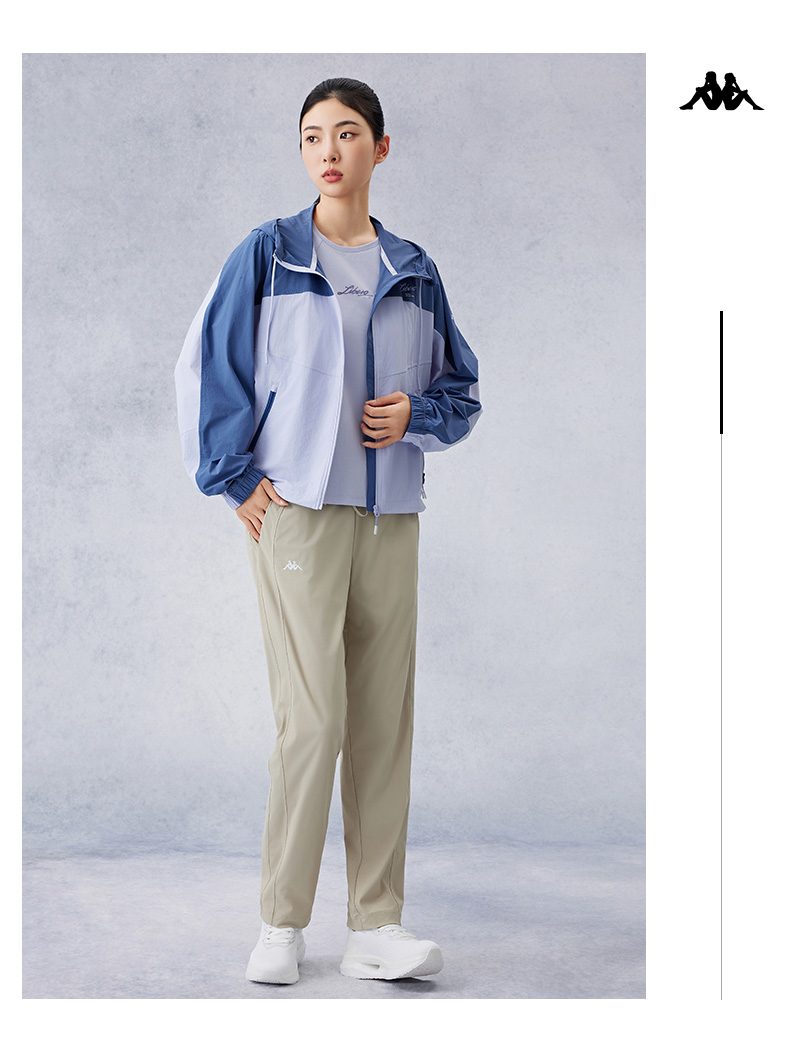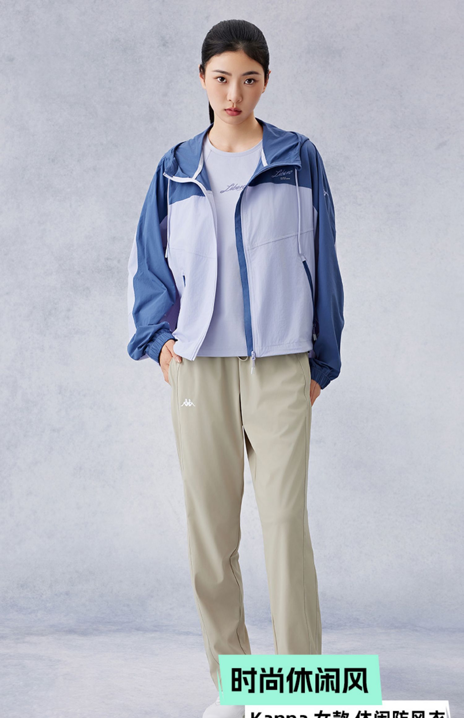 Kappa卡帕背靠背防泼水弹力防风衣梭织外套运动休闲夹克上衣女款K0E62FJ42