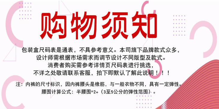 贴身穿的内裤,面料、尺寸、款式等都是需要咱们考量的地方,千万别只因为样式好看或者价格合适就随便买下了。