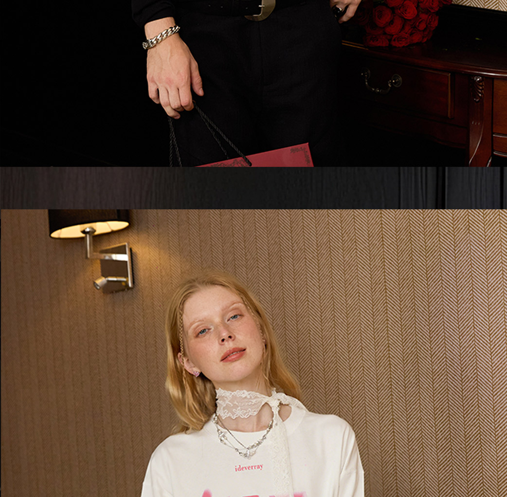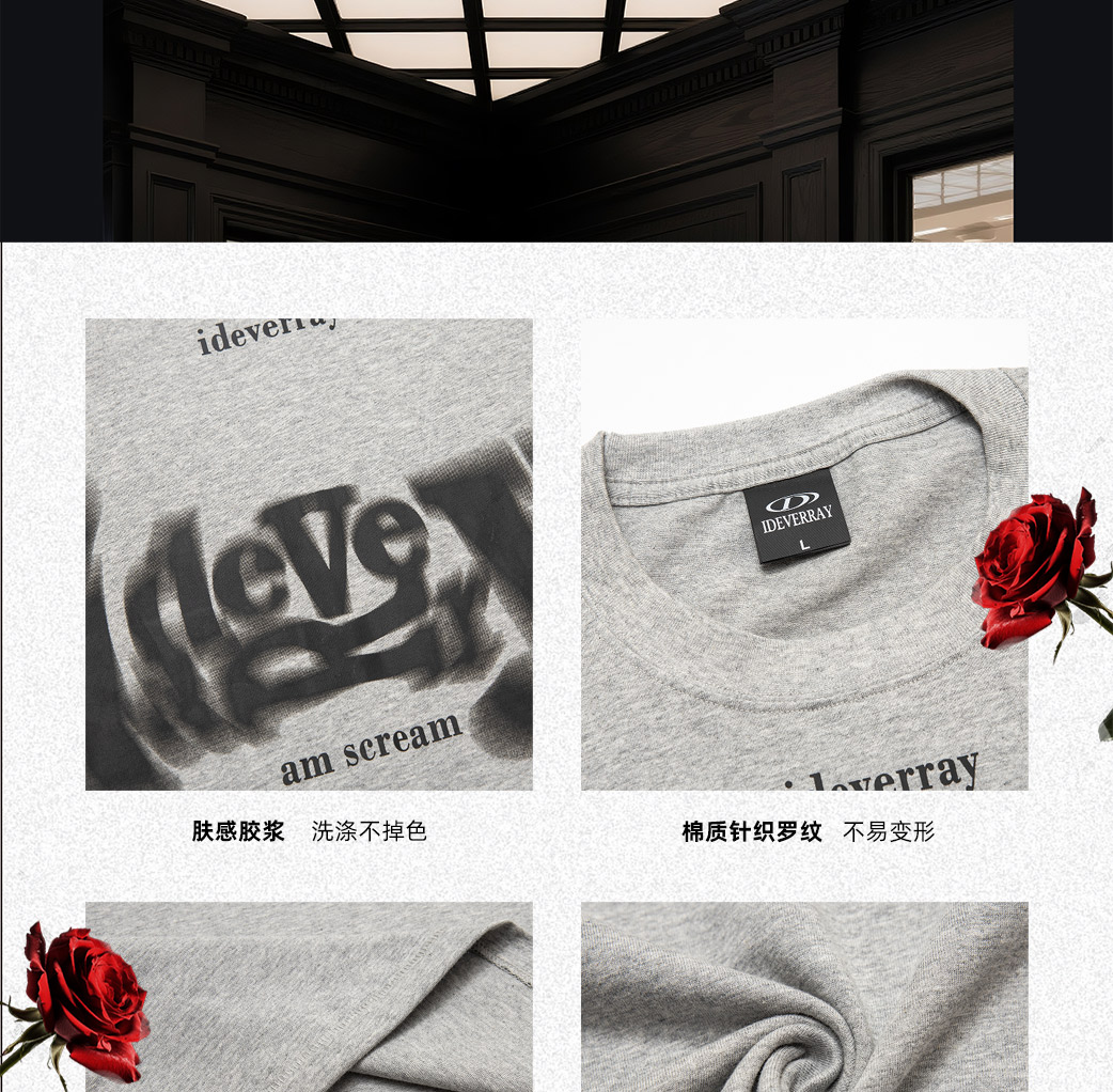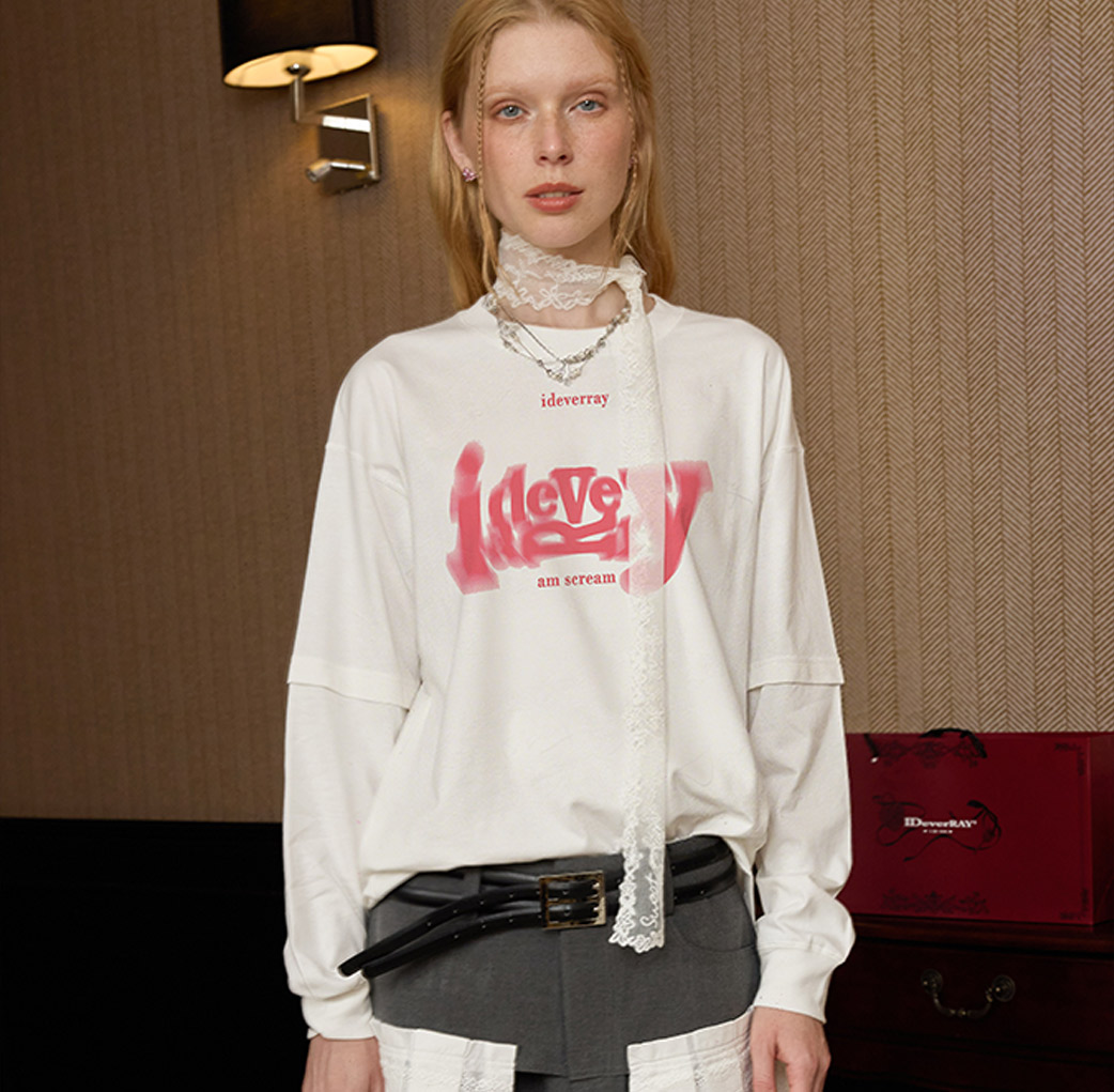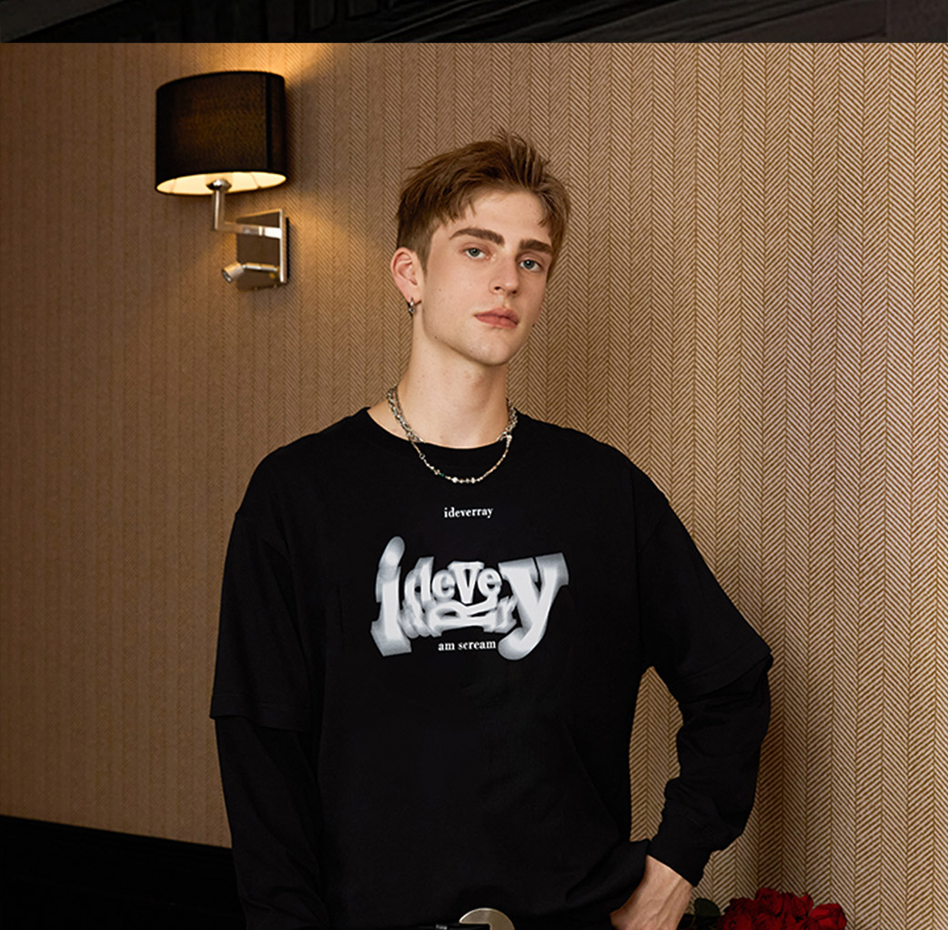 IDEVERRAY【明星同款】早秋情侣新品T恤圆领印花工艺长袖宽松上衣潮
