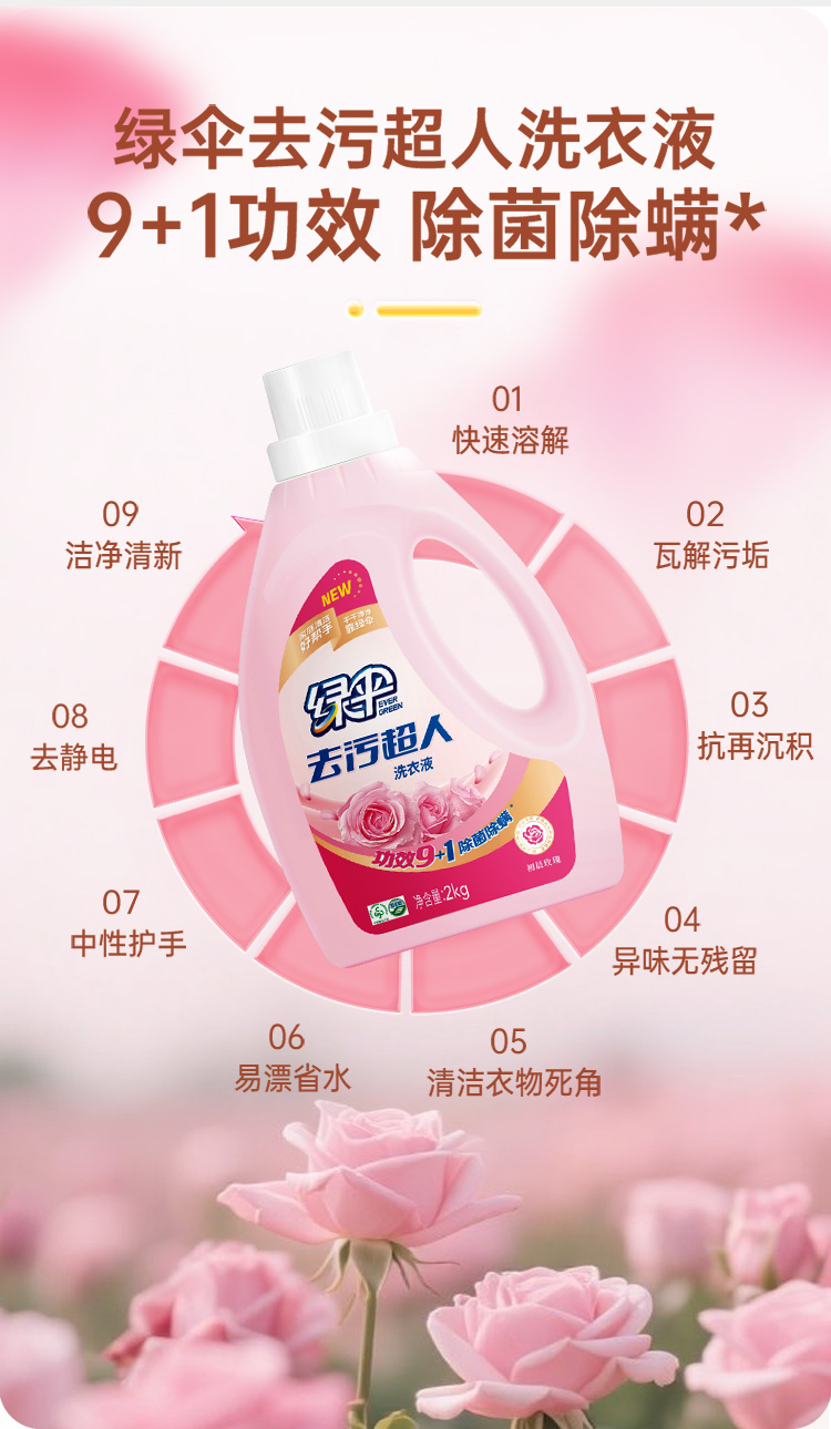 绿伞去污超人洗衣液(初晨玫瑰)2kg