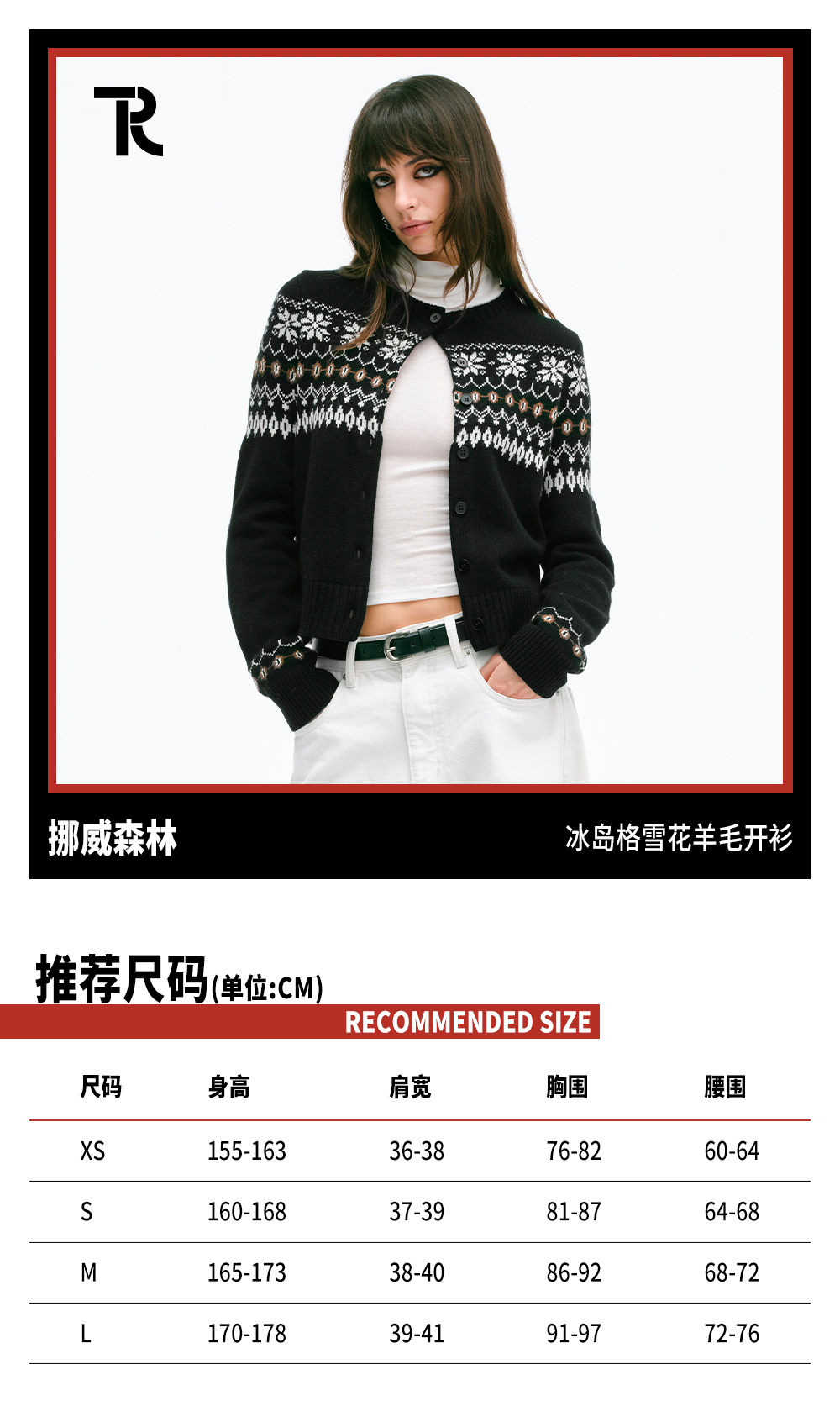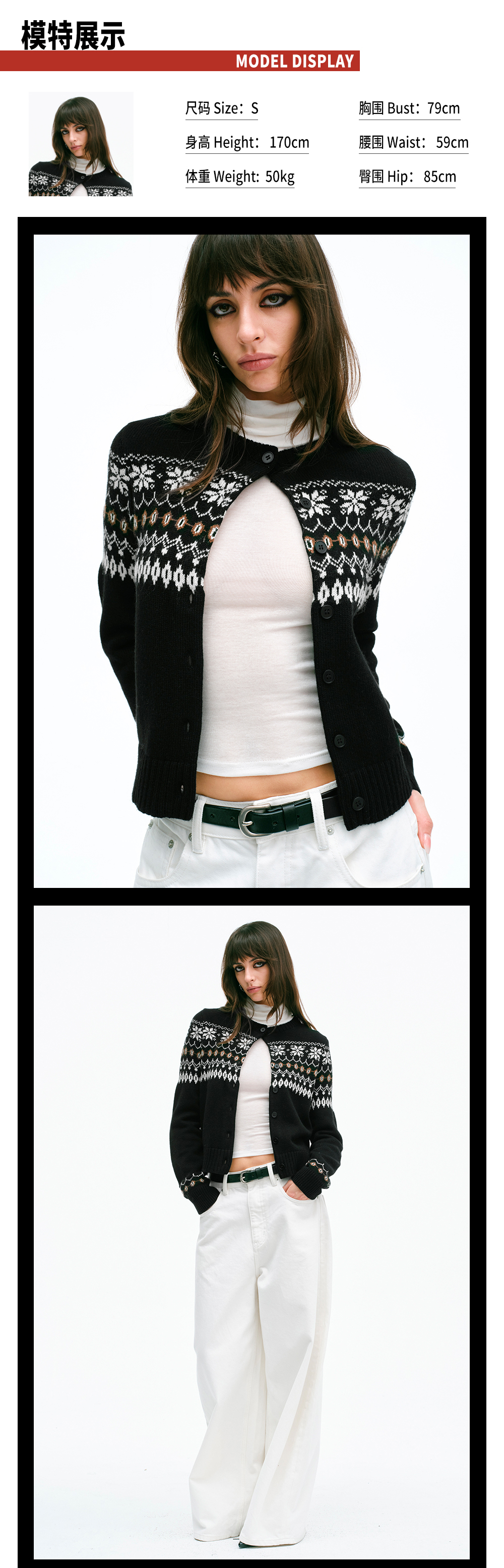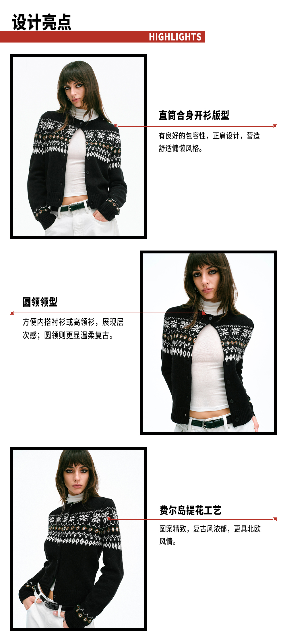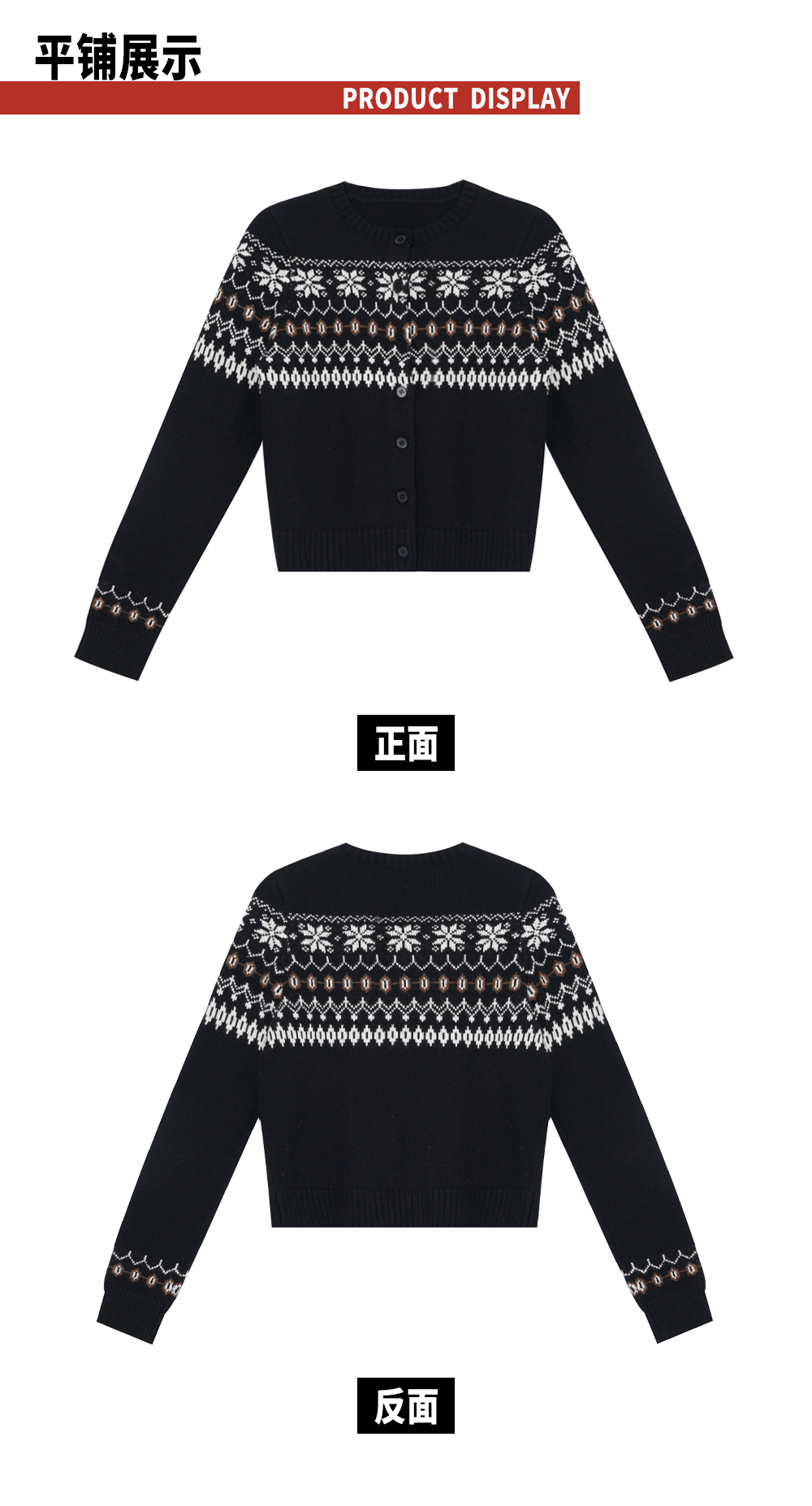 TR她热 挪威森林 黑色针织冰岛雪花费尔岛复古提花羊毛开衫外搭