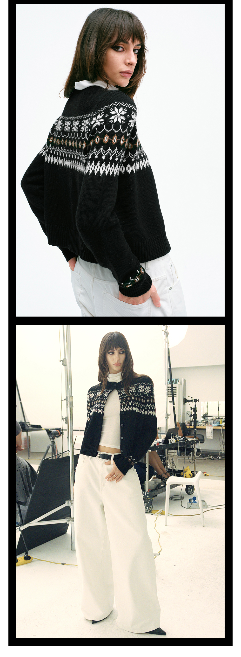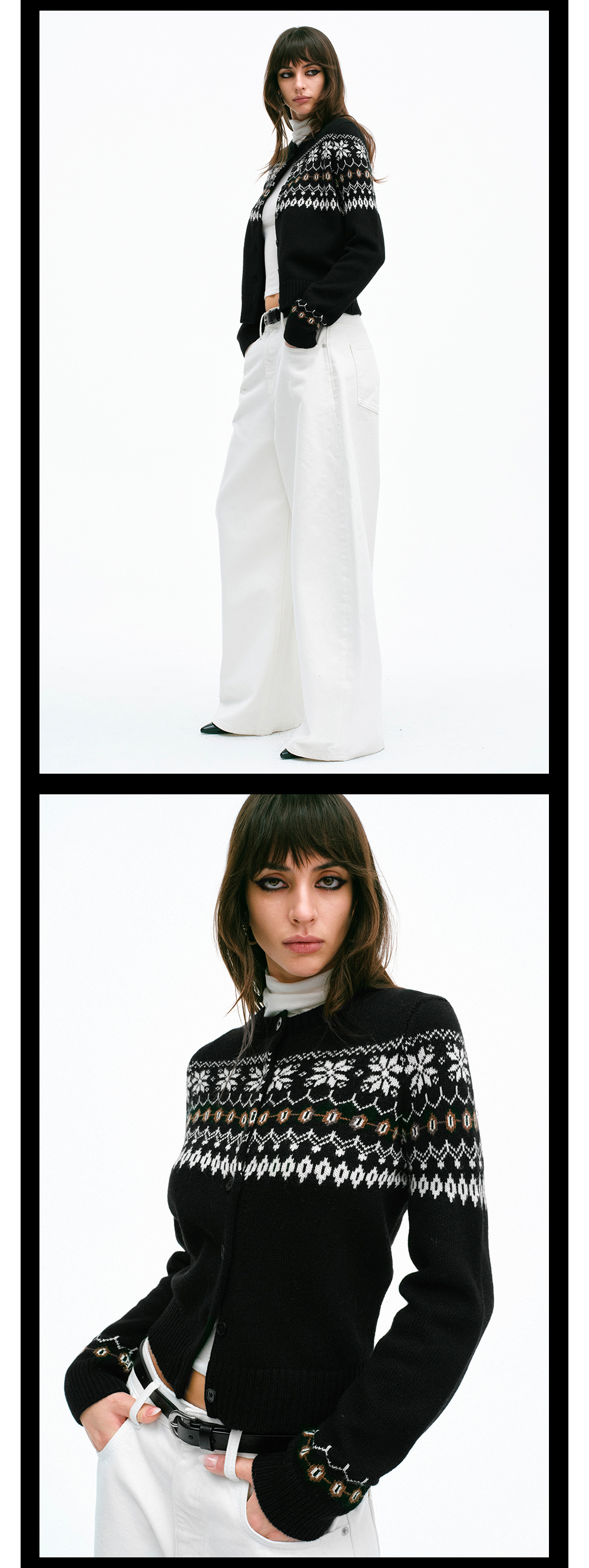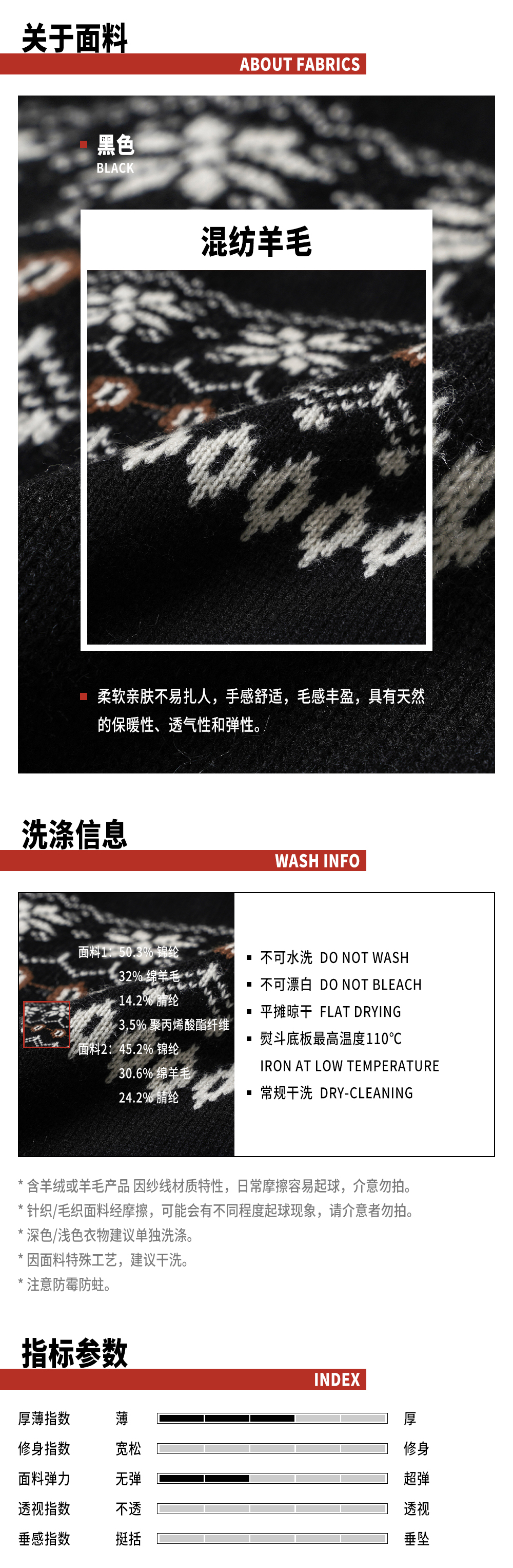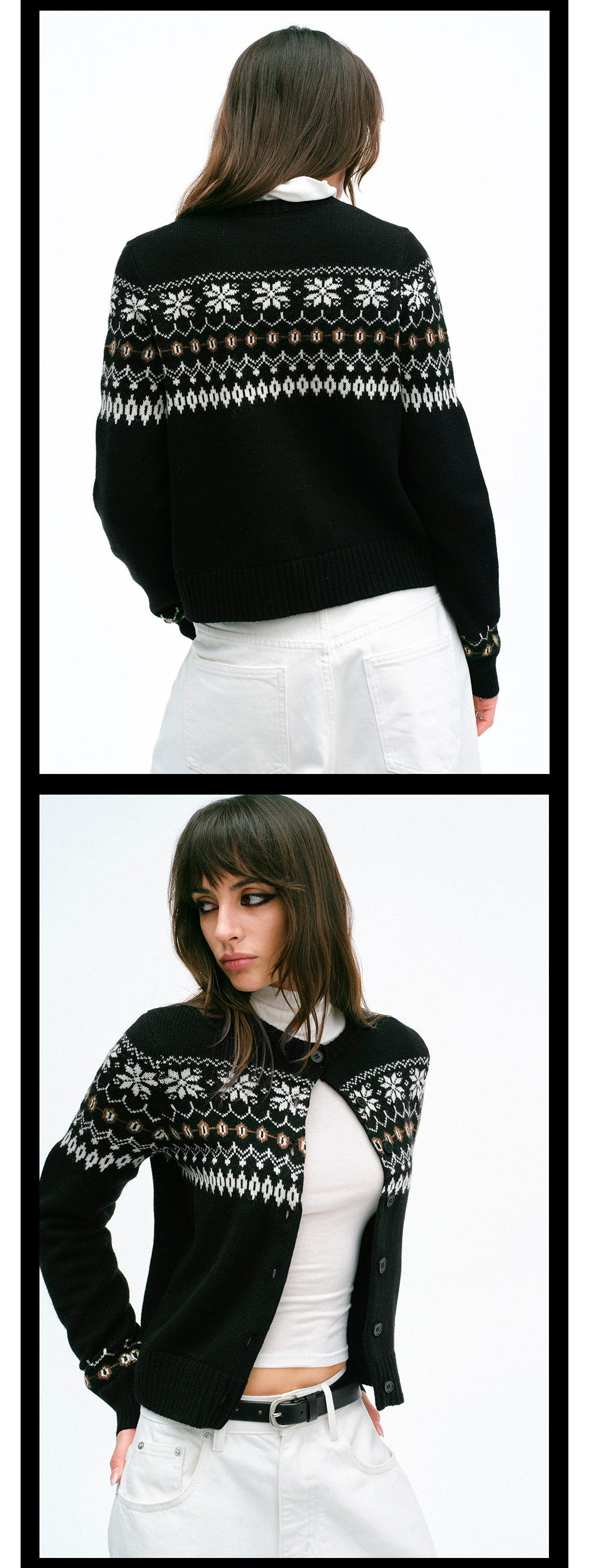 TR她热 挪威森林 黑色针织冰岛雪花费尔岛复古提花羊毛开衫外搭