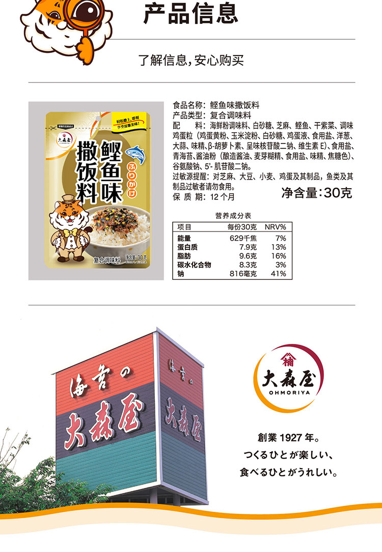 大森屋鲣鱼拌饭料日式米饭撒料儿童寿司饭团DIY