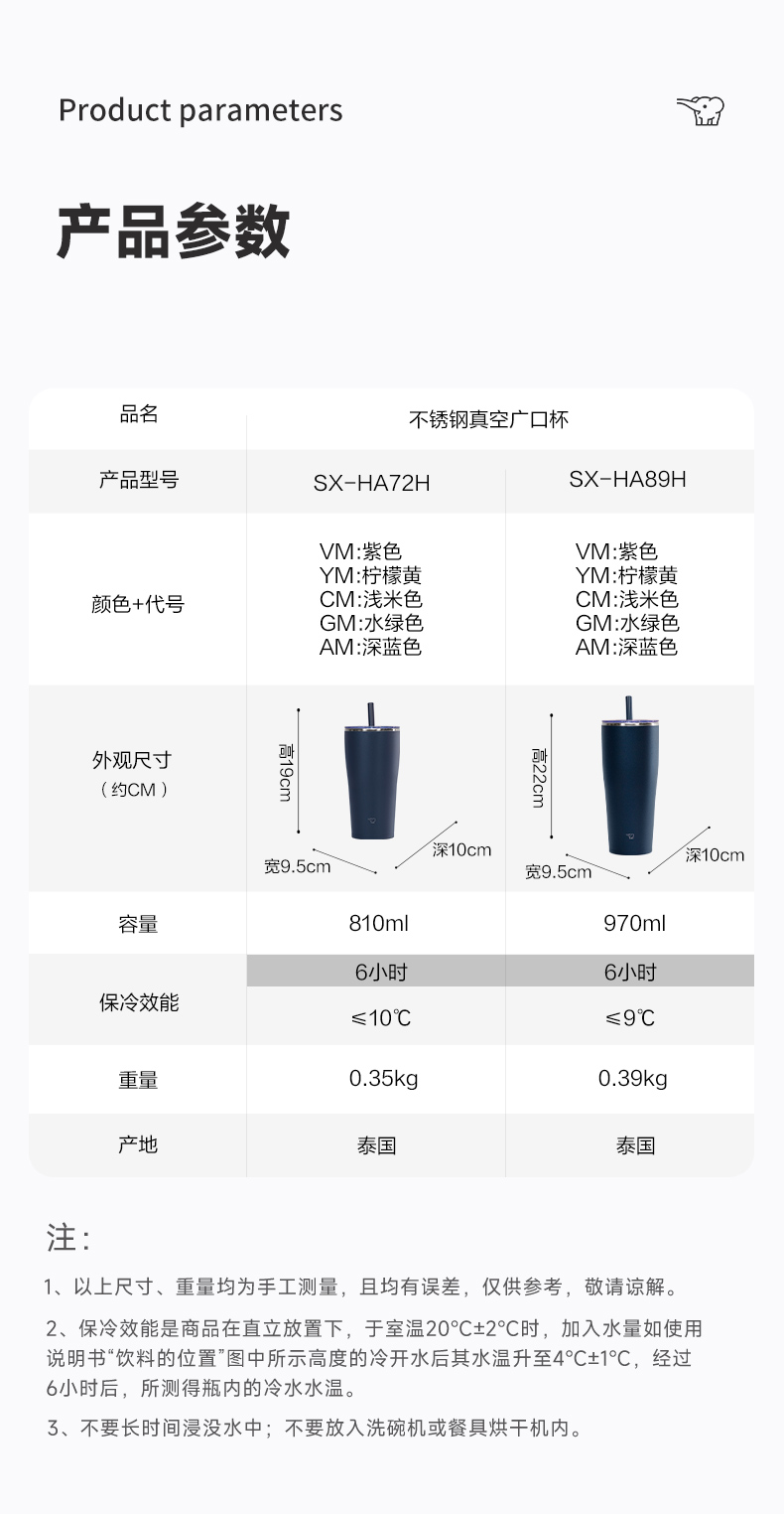 日本象印不锈钢真空广口杯970ml SXHA89H / 810ml SXHA72H