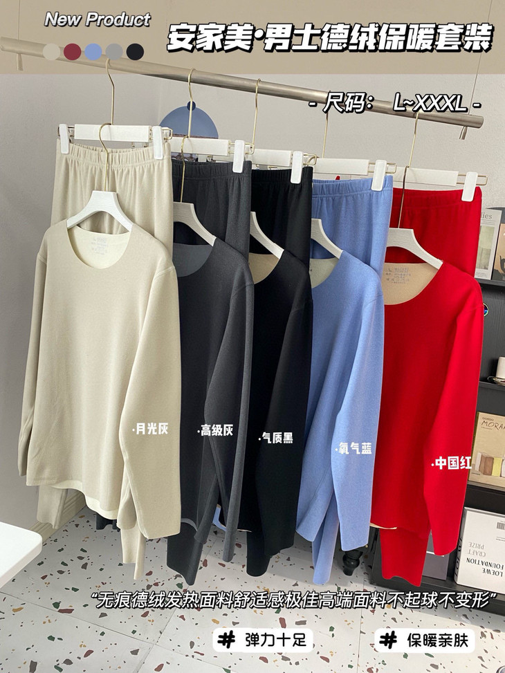 『安家美 情侣款德绒保暖套装』欧版·高品质➕无数好评💯 欧盟出口织造标准认证 欧洲官网在售24.95欧元(RMB193) 限量货源,今日清仓乱卖💰39.9起 ✔四针六线无骨无缝裁剪工艺 ✔5A光子抗菌工艺✔超大弹力 不变形 🔆专业保暖内衣就选“安家美”,不会让你失望!