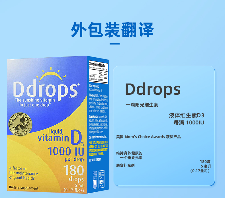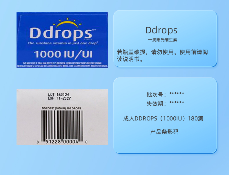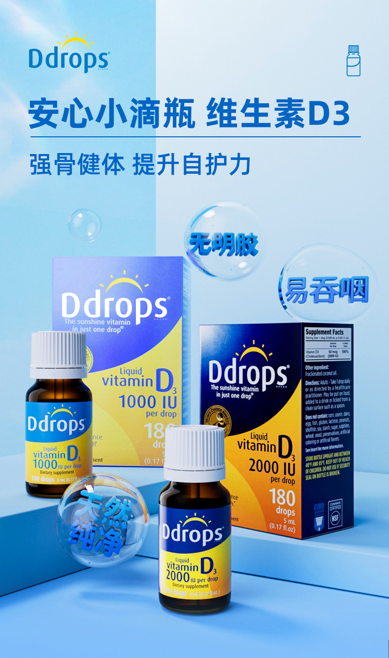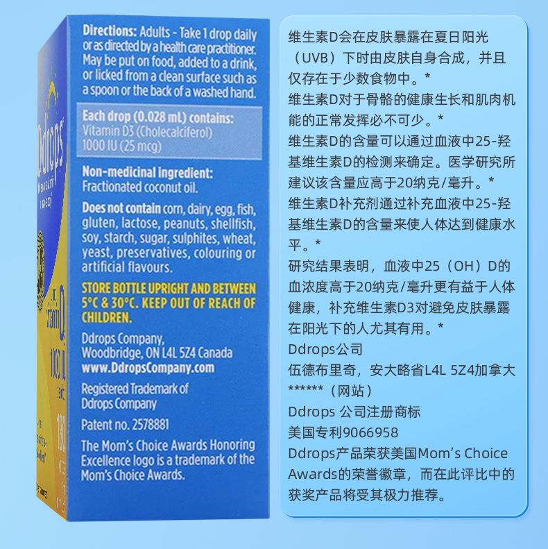 Ddrops滴卓思儿童成人维生素D3滴剂 加拿大进口 促钙好吸收 DD小滴瓶SC